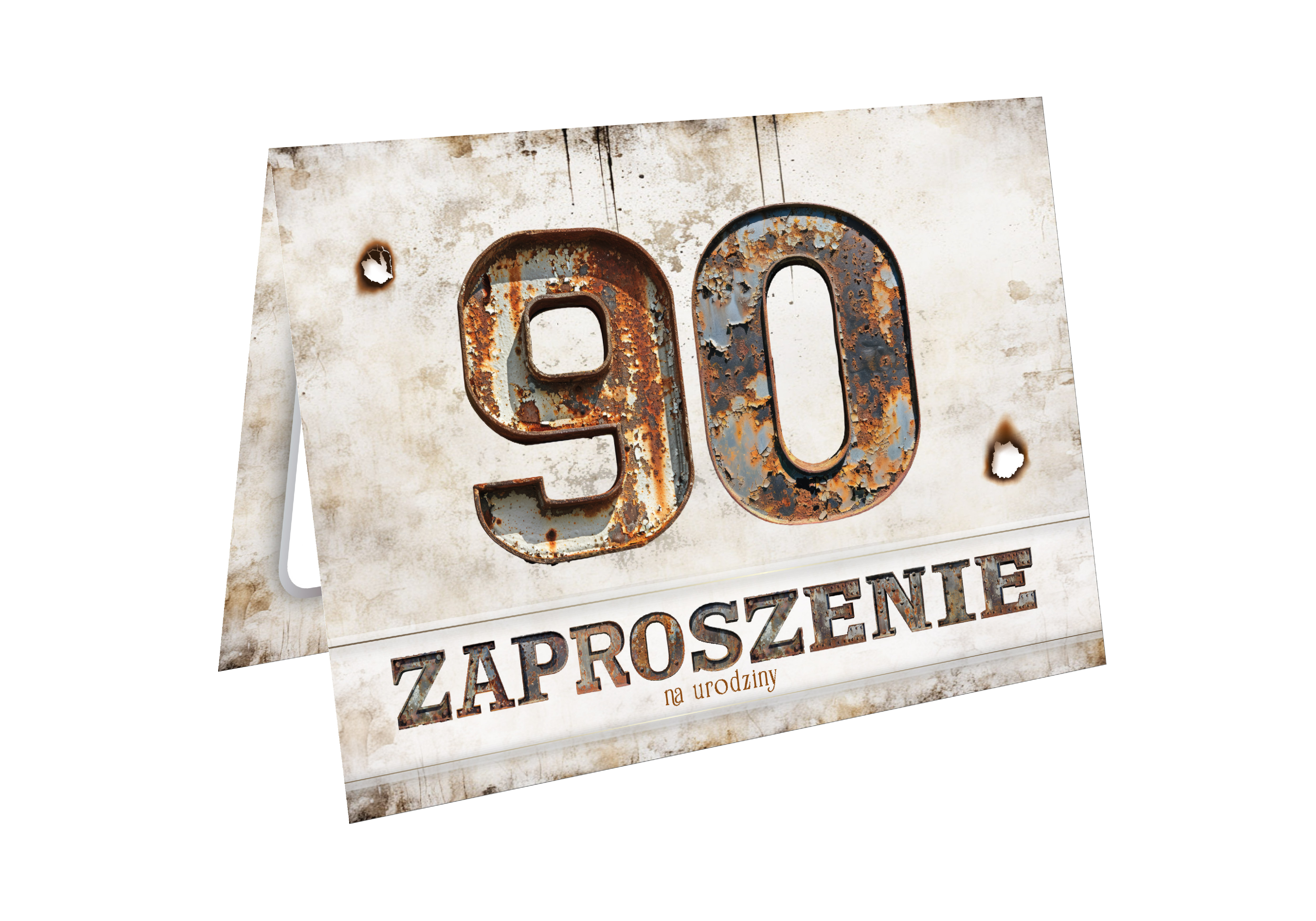 ZAPROSZENIE NA 90 URODZINY STARE ŚMIESZNE RDZA ZARDZEWIAŁE + KOPERTA