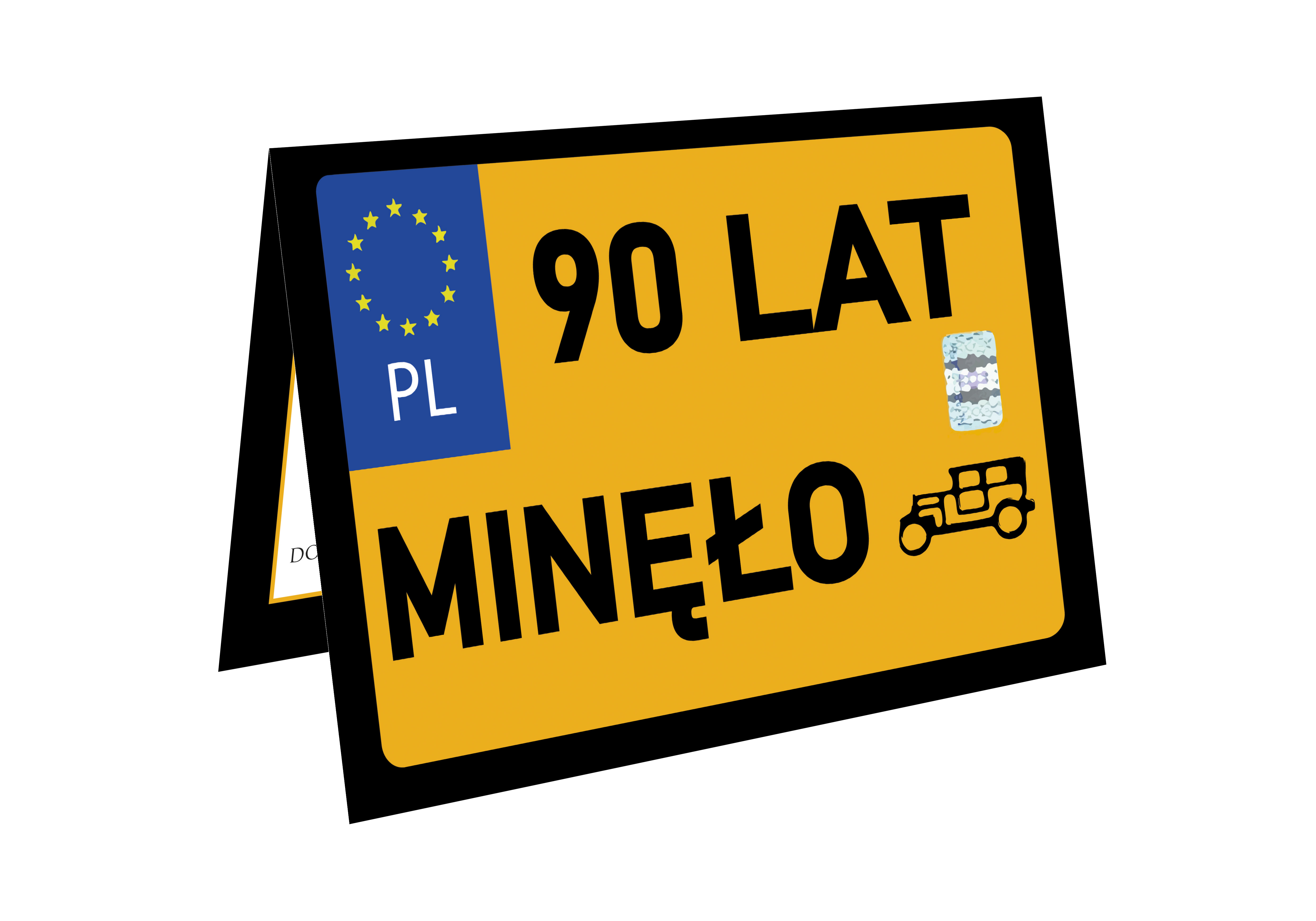 ZAPROSZENIE NA 90 URODZINY STARA TABLICA REJESTRACYJA ZABYTEK ŻÓŁTA TABLICA