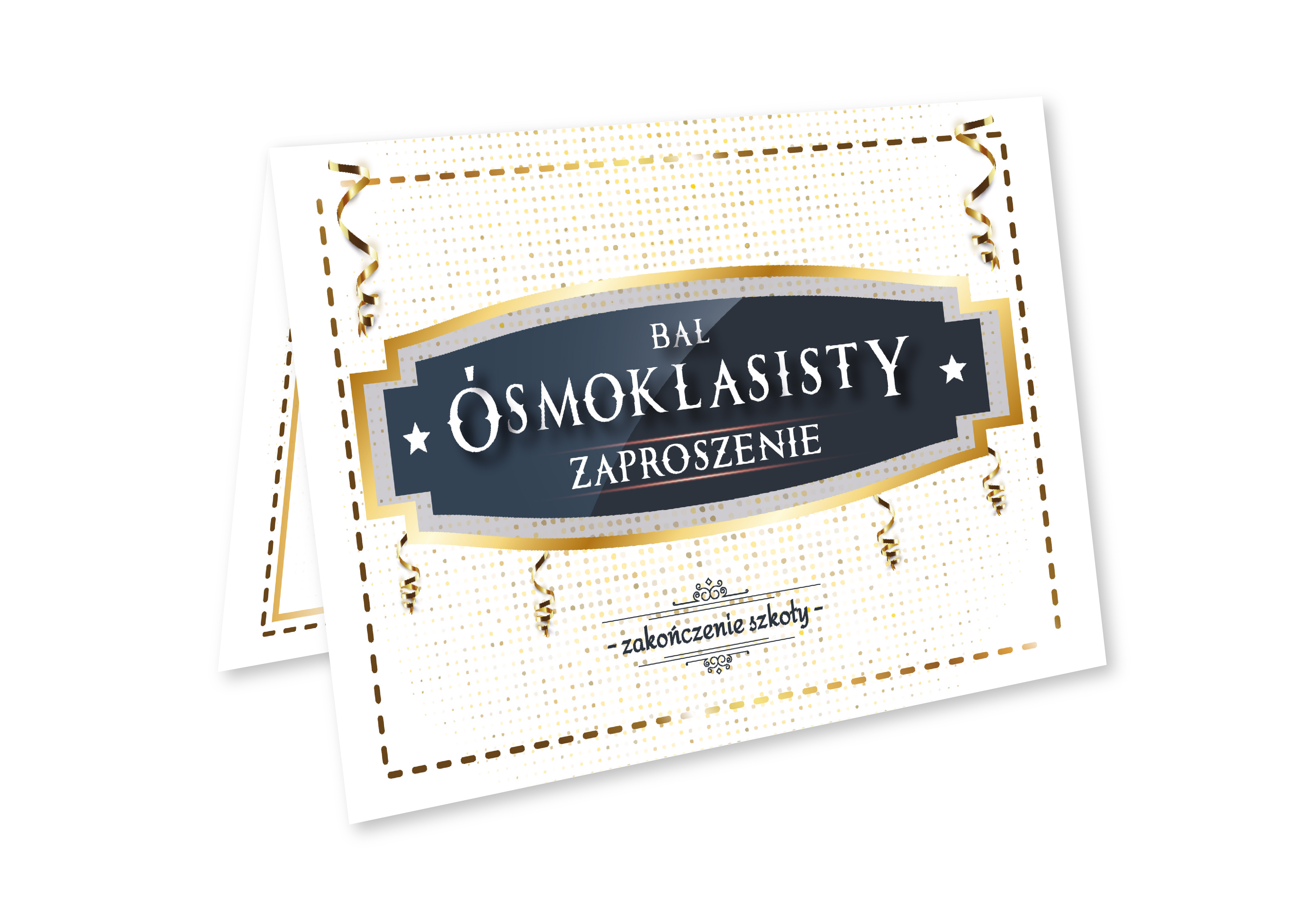ZAPROSZENIE NA BAL ÓSMOKLASISTY KOMERS ZAKOŃCZENIE CZARNE LUX HIT! +koperta