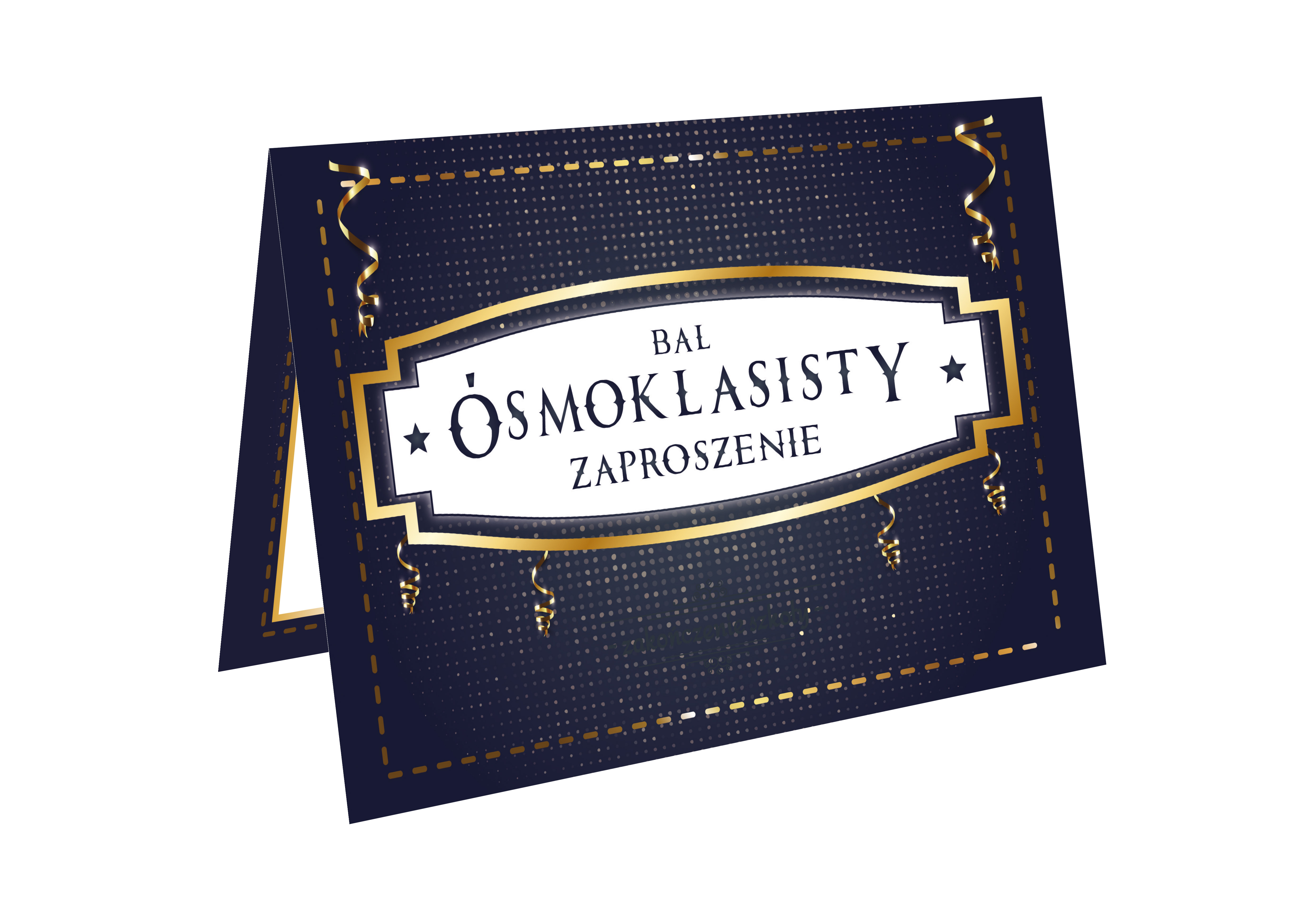 ZAPROSZENIE NA BAL ÓSMOKLASISTY KOMERS ZAKOŃCZENIE ELEGANCKIE GRANATOWE +koperta