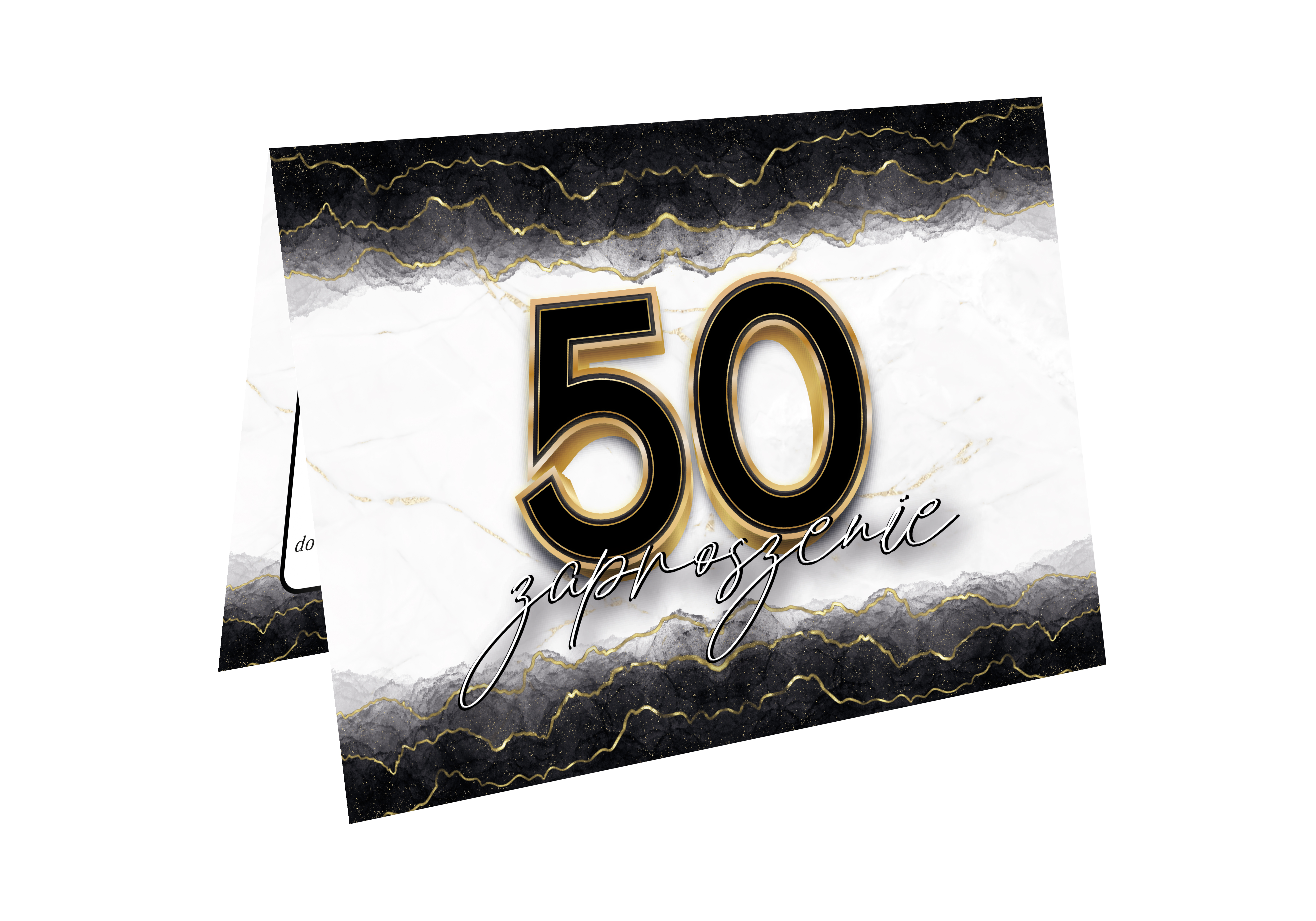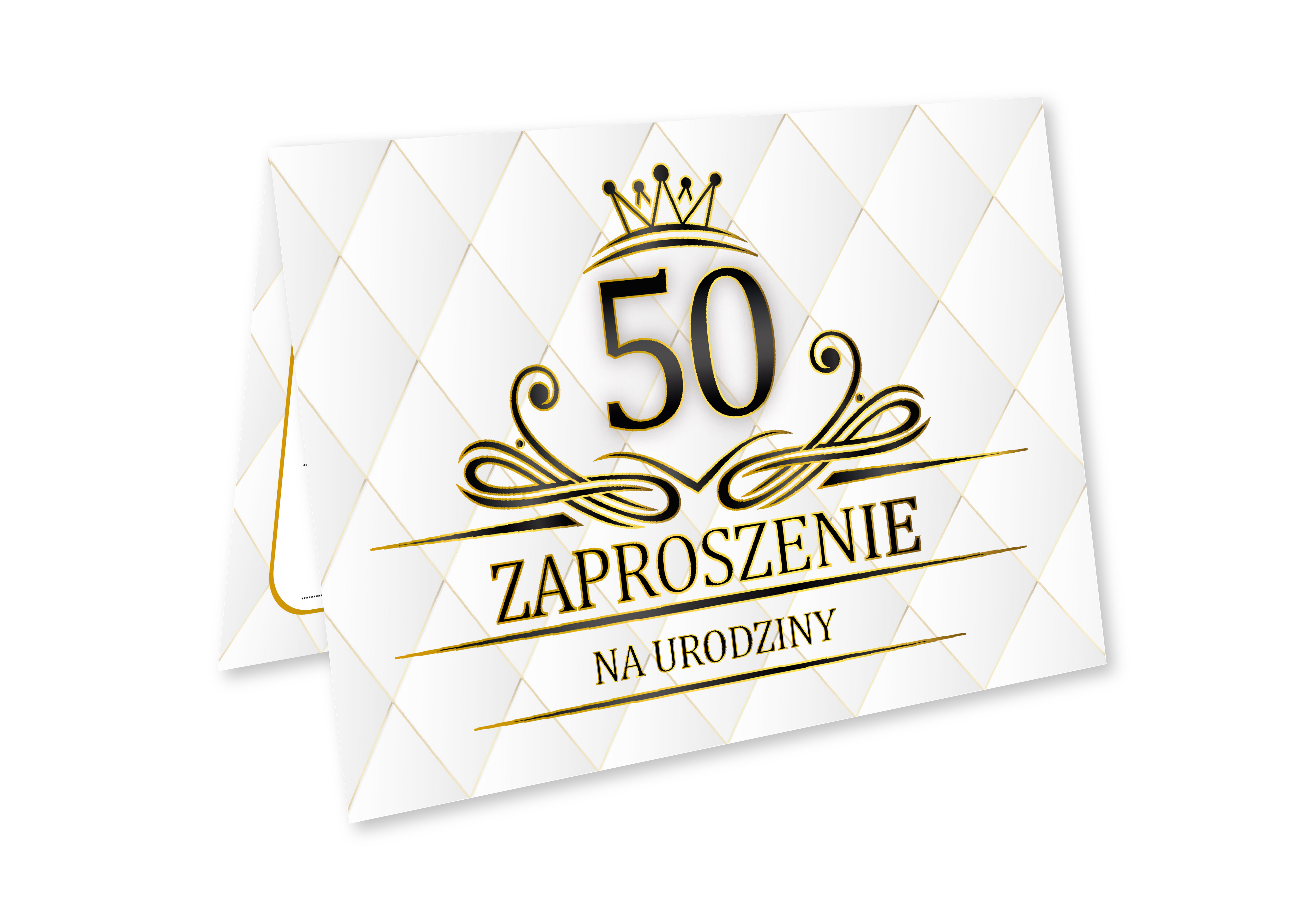 ZAPROSZENIE NA 50 URODZINY BIAŁE CZARNE ZŁOTE ELEGANCKIE LUX + KOPERTA