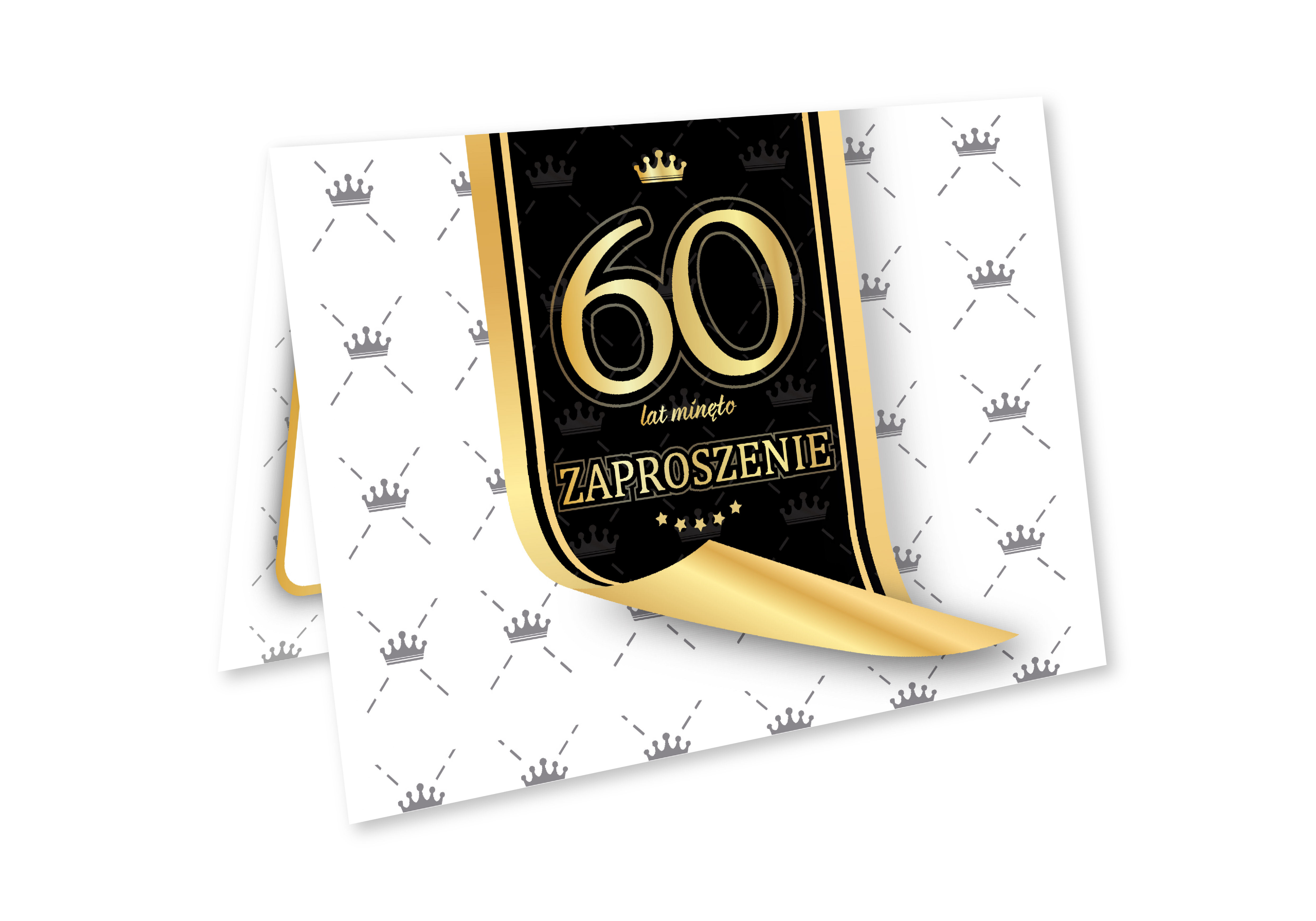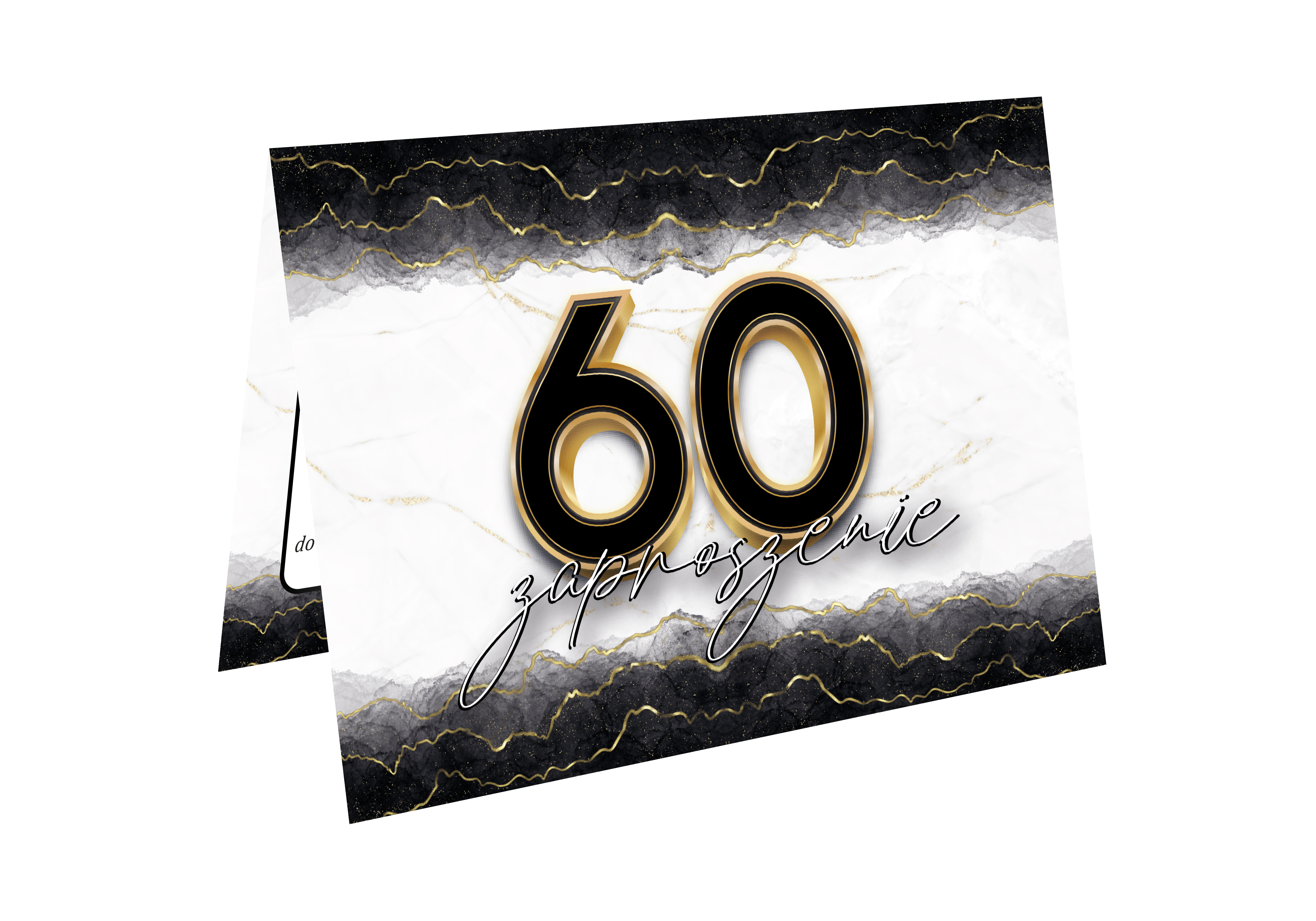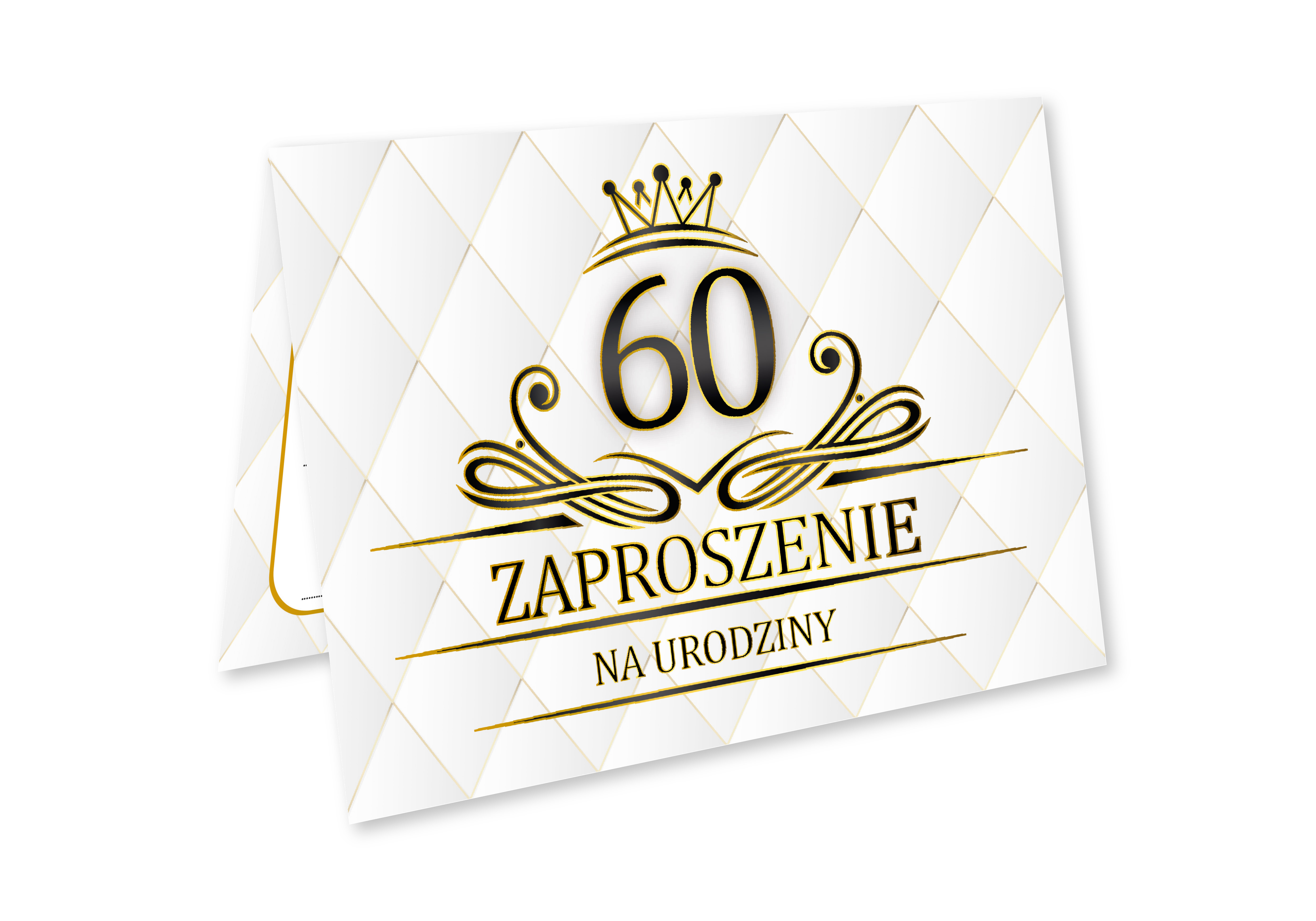 ZAPROSZENIE NA 60 URODZINY BIAŁE CZARNE ZŁOTE ELEGANCKIE LUX + KOPERTA