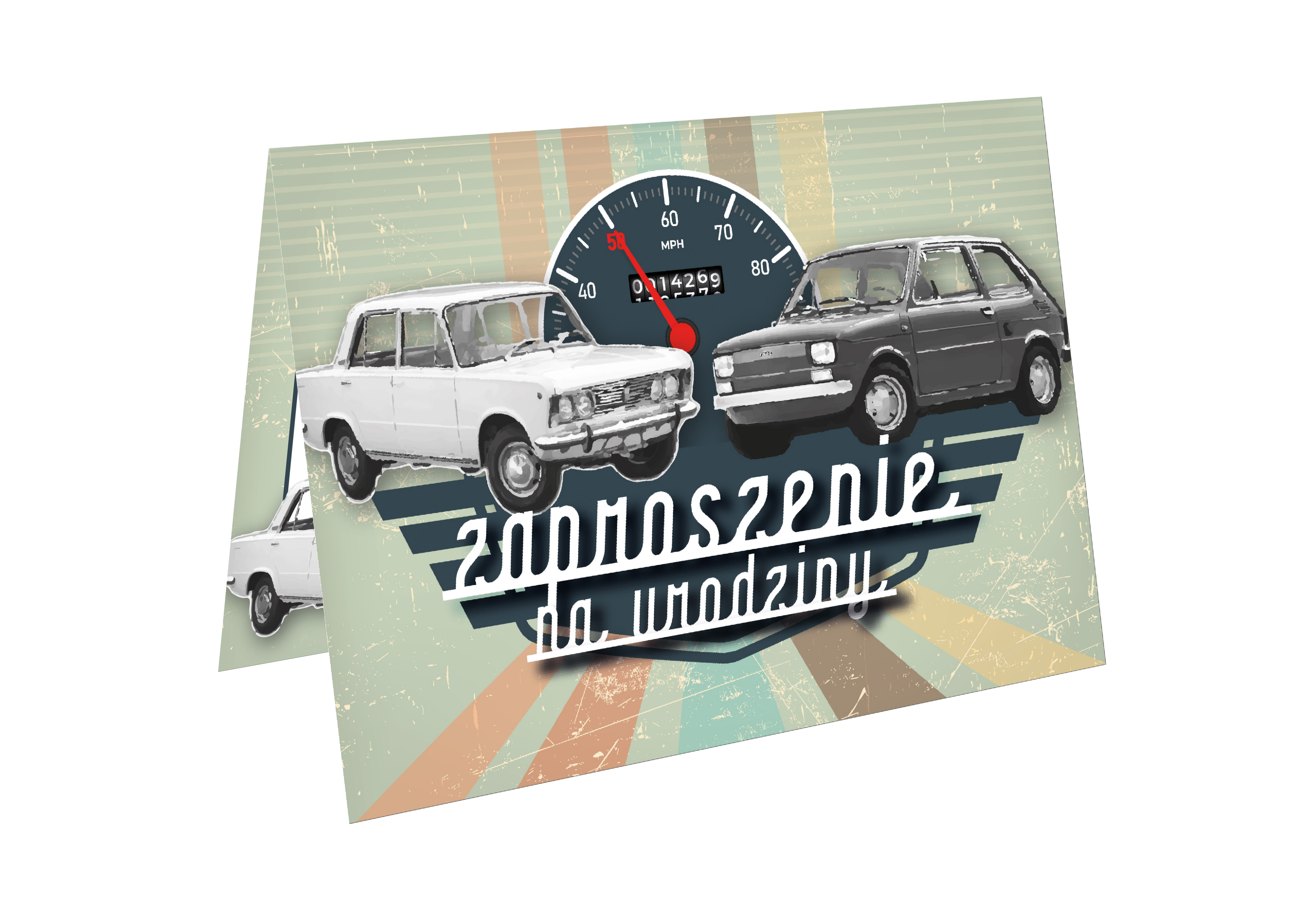 ZAPROSZENIE NA 50 URODZINY PRL FIAT 125 126 LICZNIK VINTGE+ KOPERTA