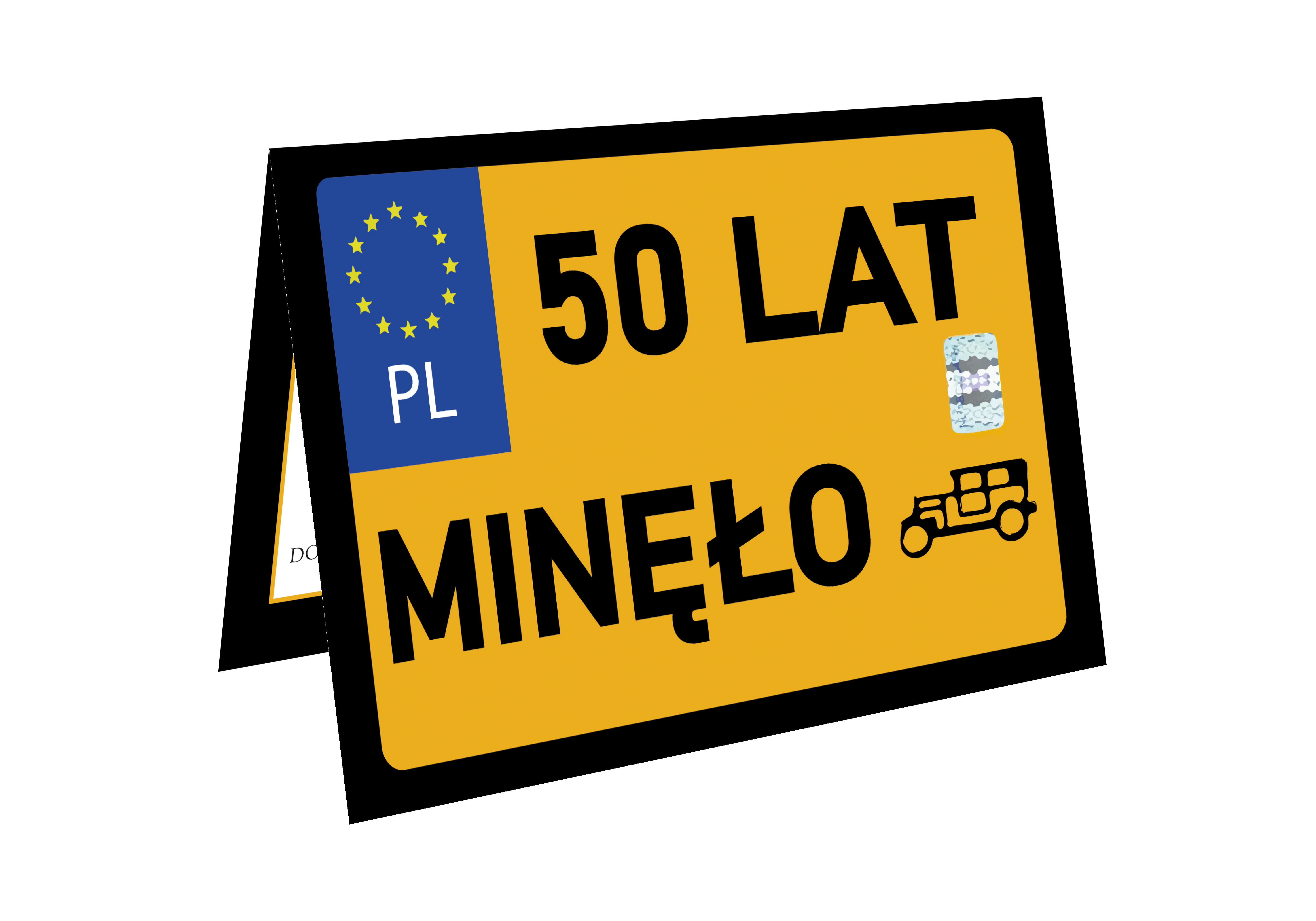 ZAPROSZENIE NA 50 URODZINY STARA TABLICA REJESTRACYJA ZABYTEK ŻÓŁTA TABLICA