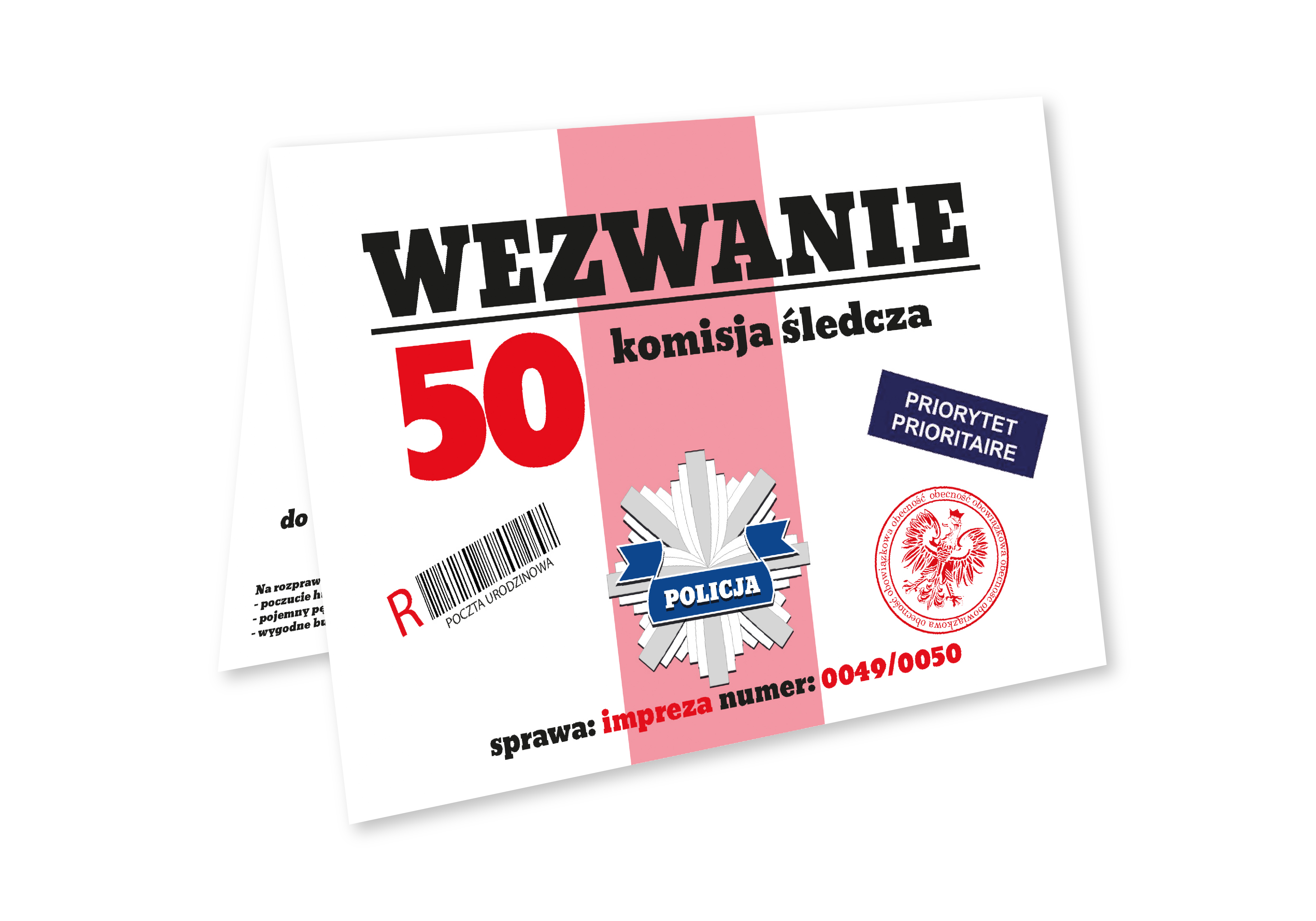 ZAPROSZENIE NA 50 URODZINY WEZWANIE POLICYJNE POLICJA + KOPERTA