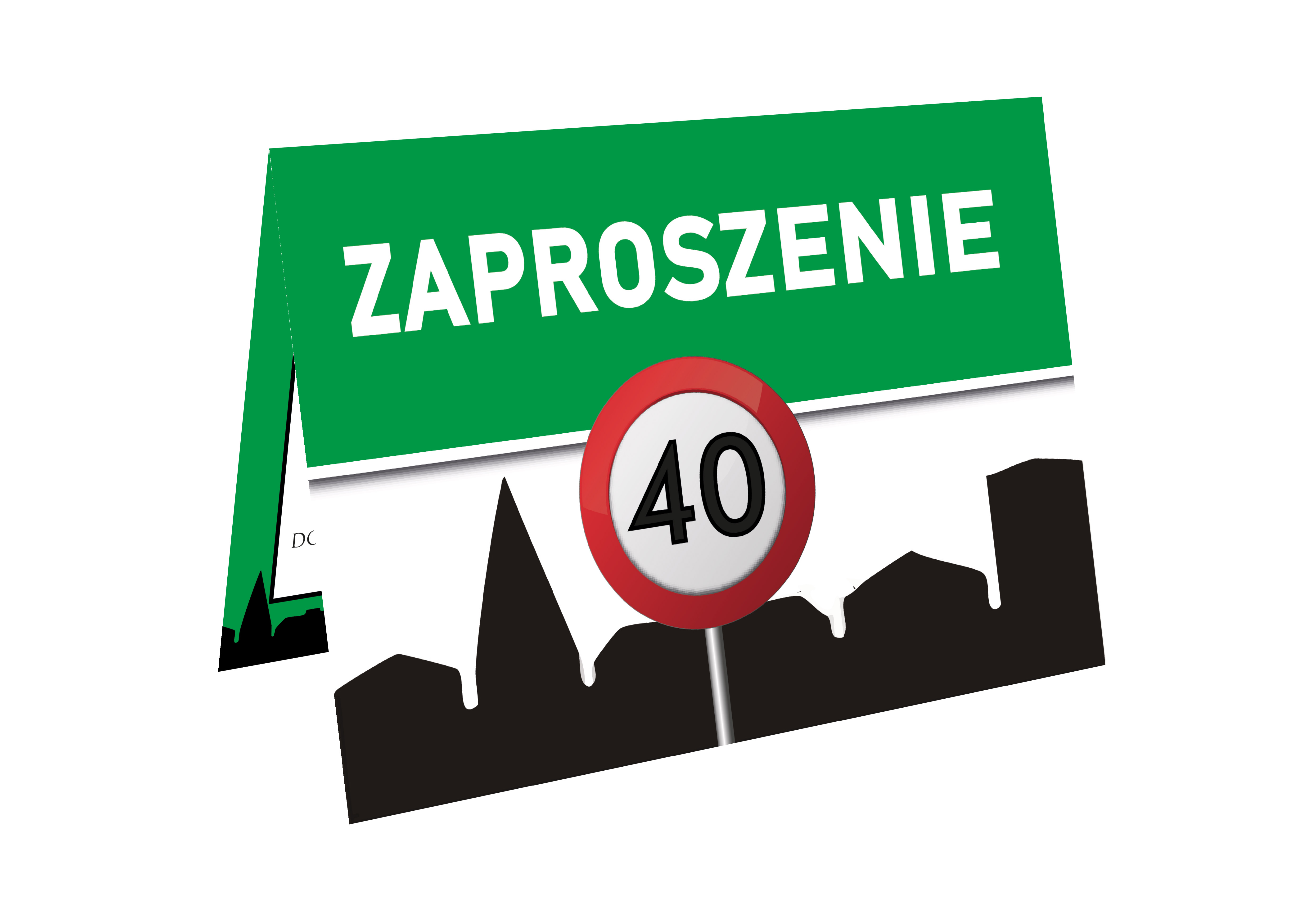 ZAPROSZENIE NA 40 URODZINY ZNAK TEREN ZABUDOWANY ŚMIESZNE