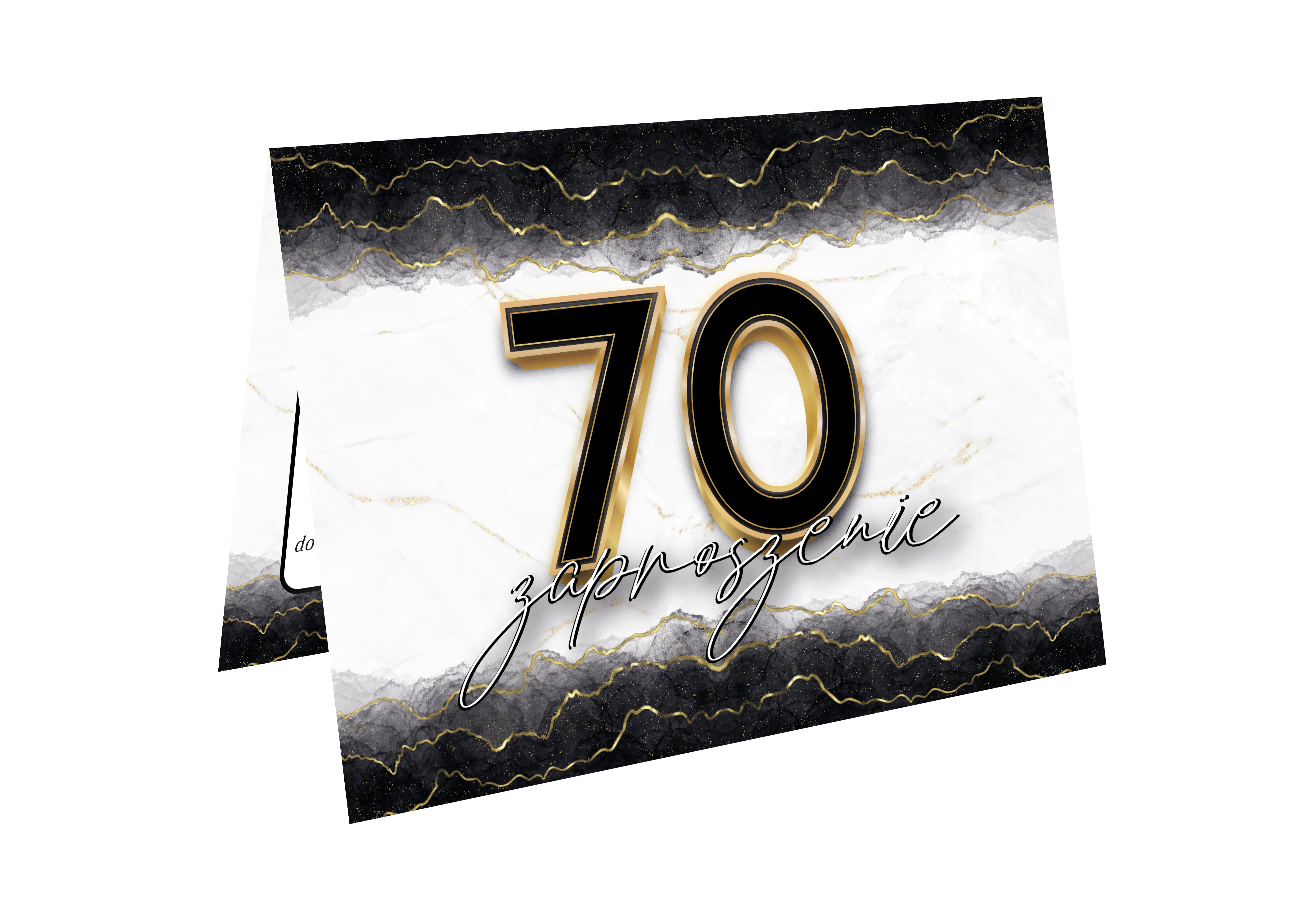 ZAPROSZENIE NA 70 URODZINY BIAŁE CZARNE ZŁOTE ELEGANCKIE LUX + KOPERTA