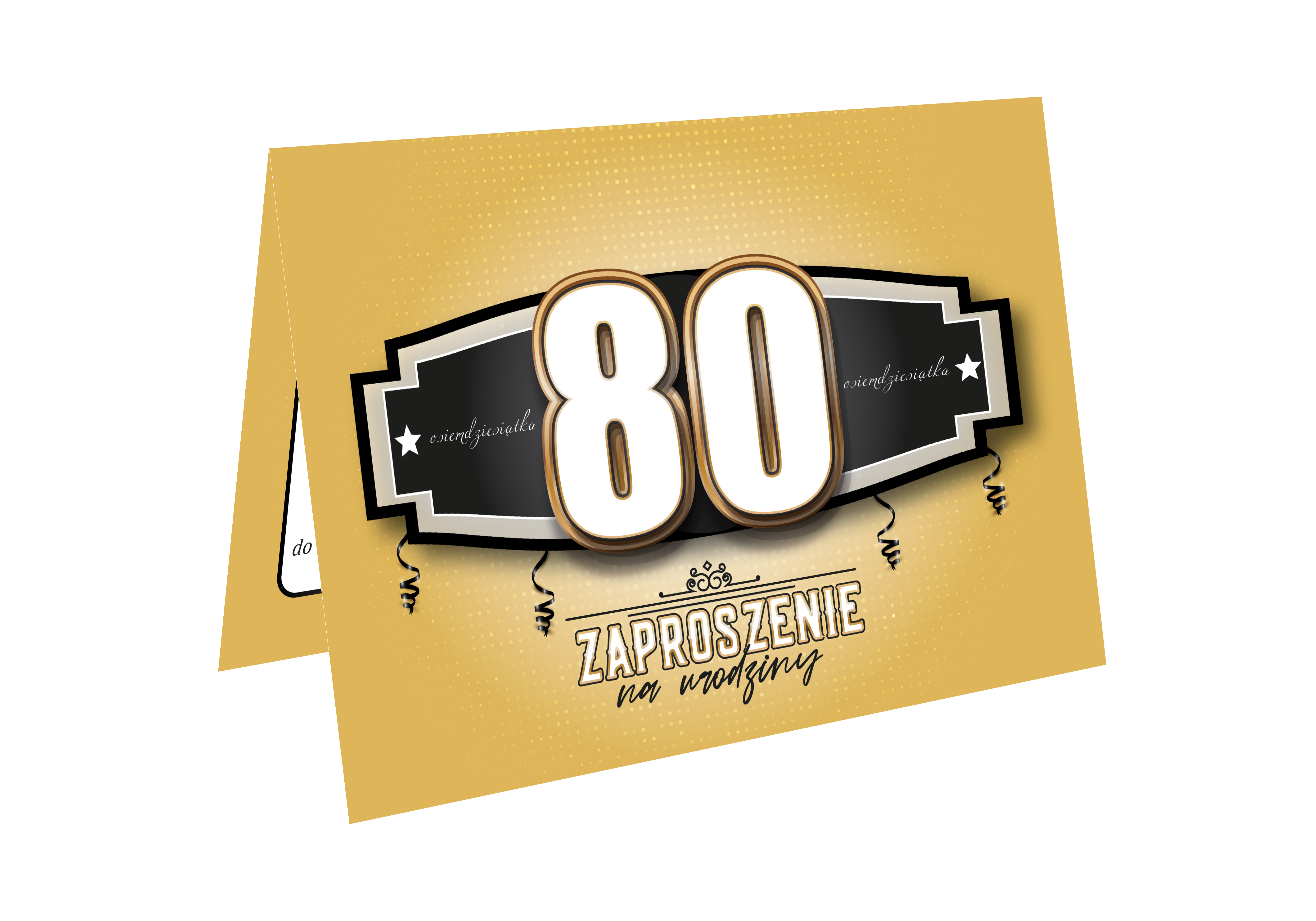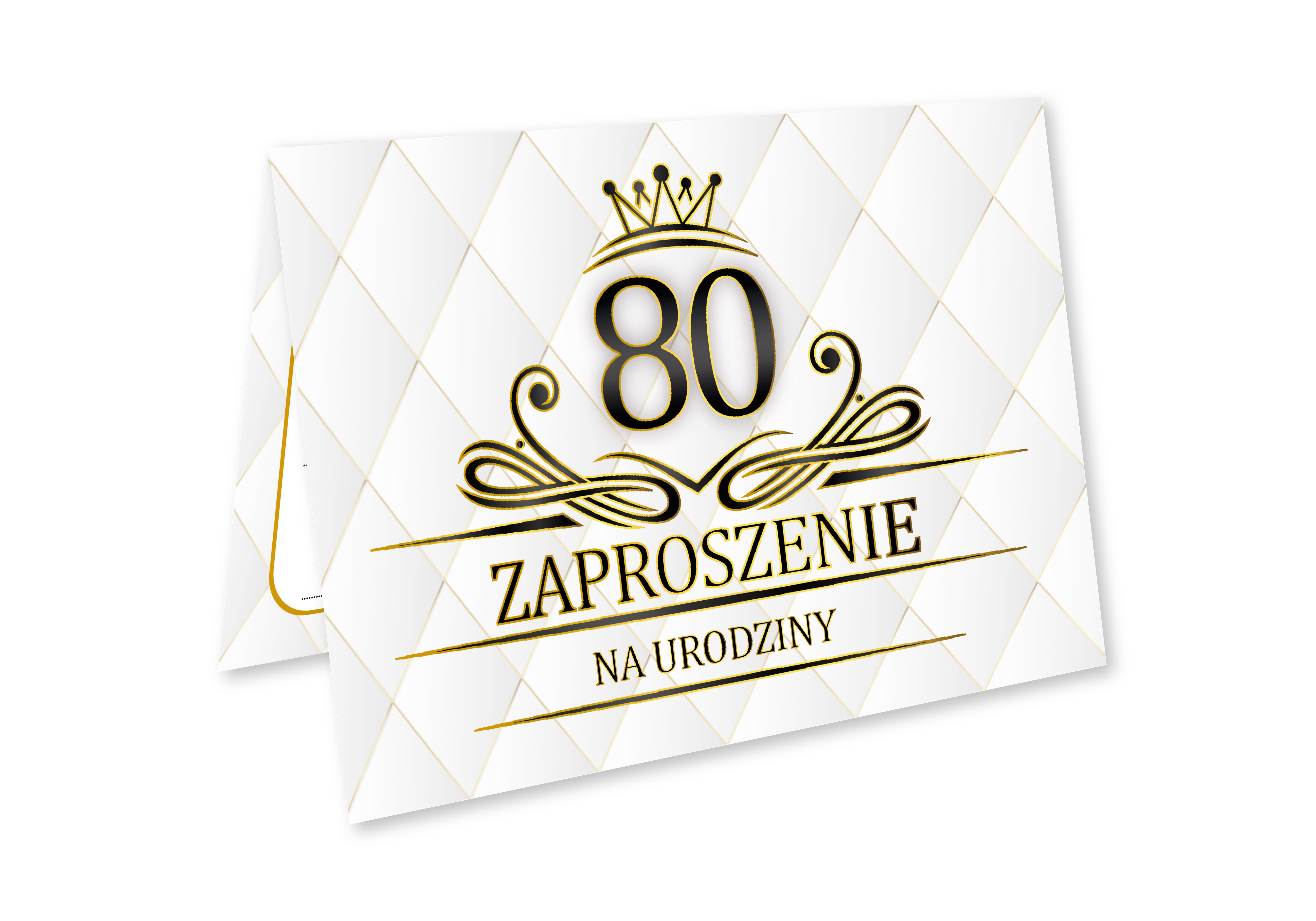 ZAPROSZENIE NA 80 URODZINY BIAŁE CZARNE ZŁOTE ELEGANCKIE LUX + KOPERTA