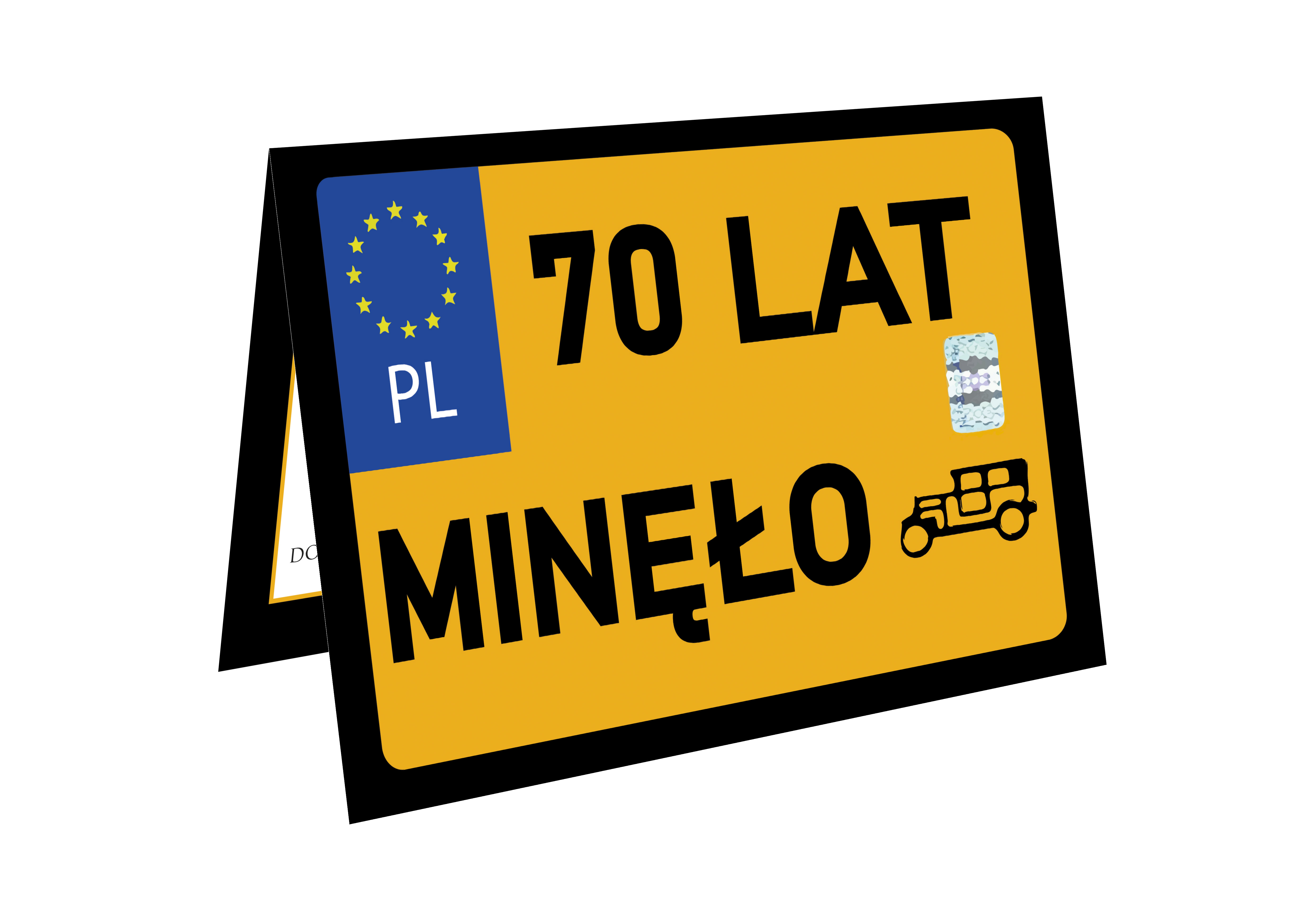 ZAPROSZENIE NA 70 URODZINY STARA TABLICA REJESTRACYJA ZABYTEK ŻÓŁTA TABLICA