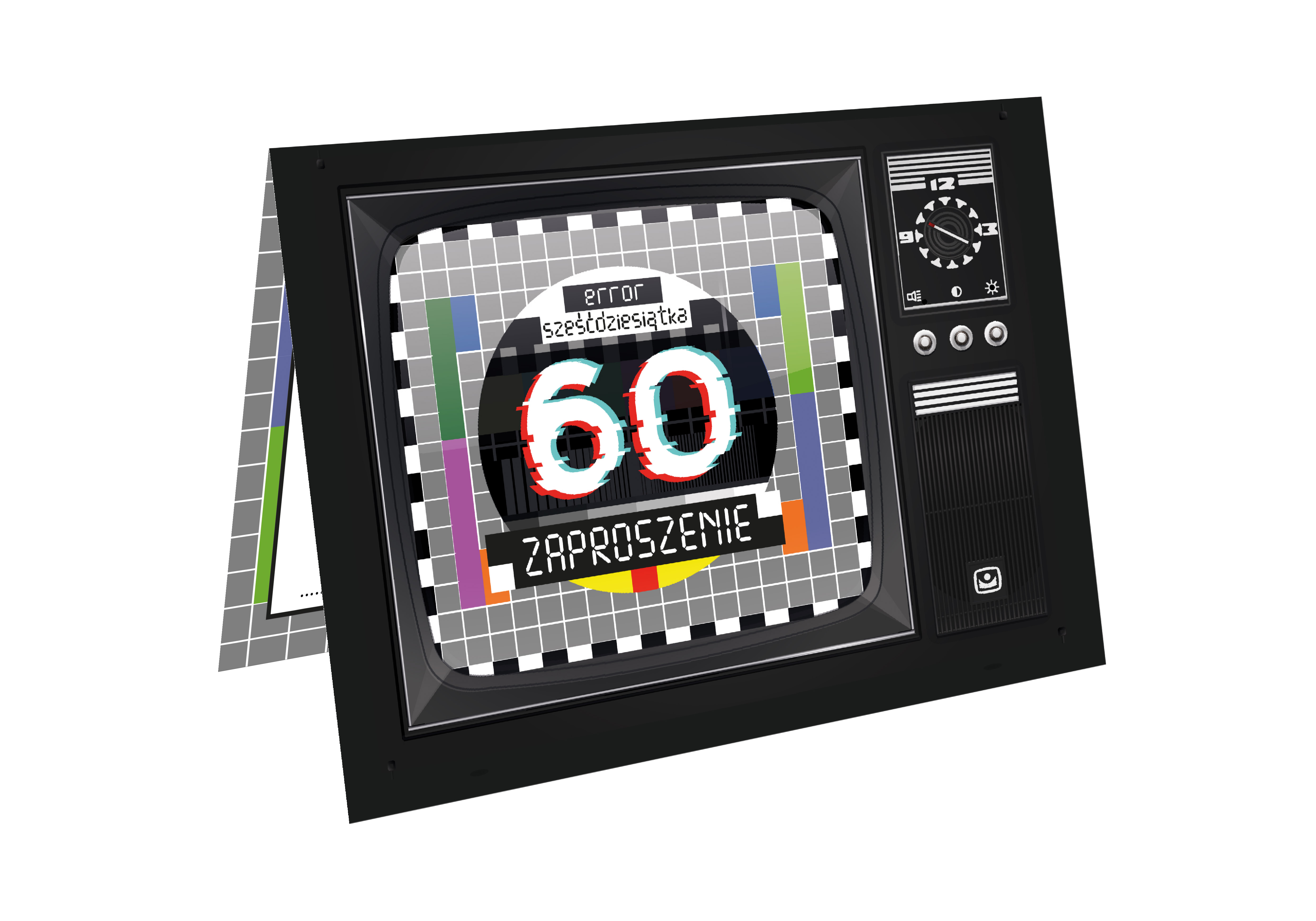 ZAPROSZENIE NA 60 URODZINY STARY TELEWIZOR PRL TV ERROR BŁĄD + KOPERTA