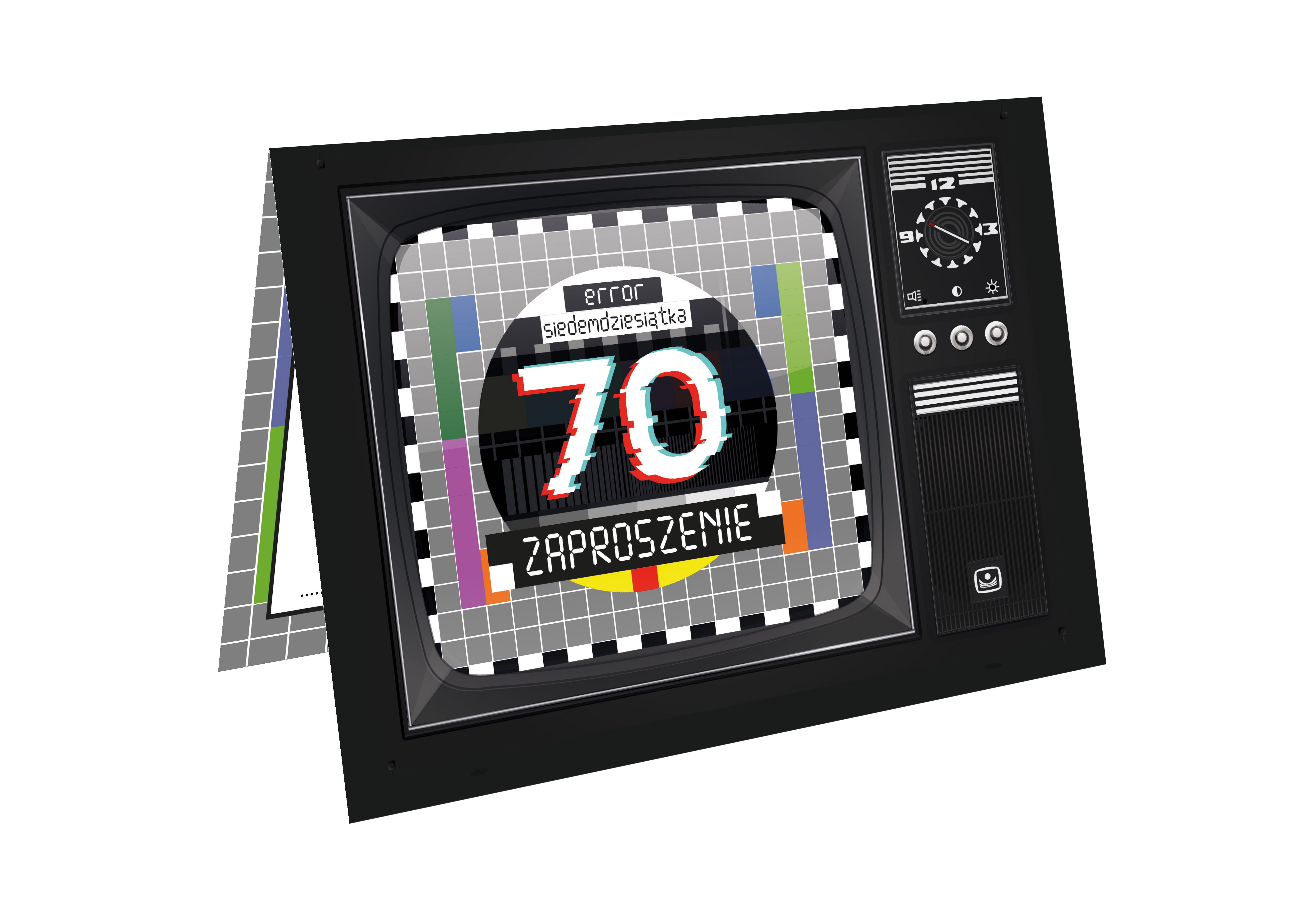 ZAPROSZENIE NA 70 URODZINY STARY TELEWIZOR PRL TV ERROR BŁĄD + KOPERTA