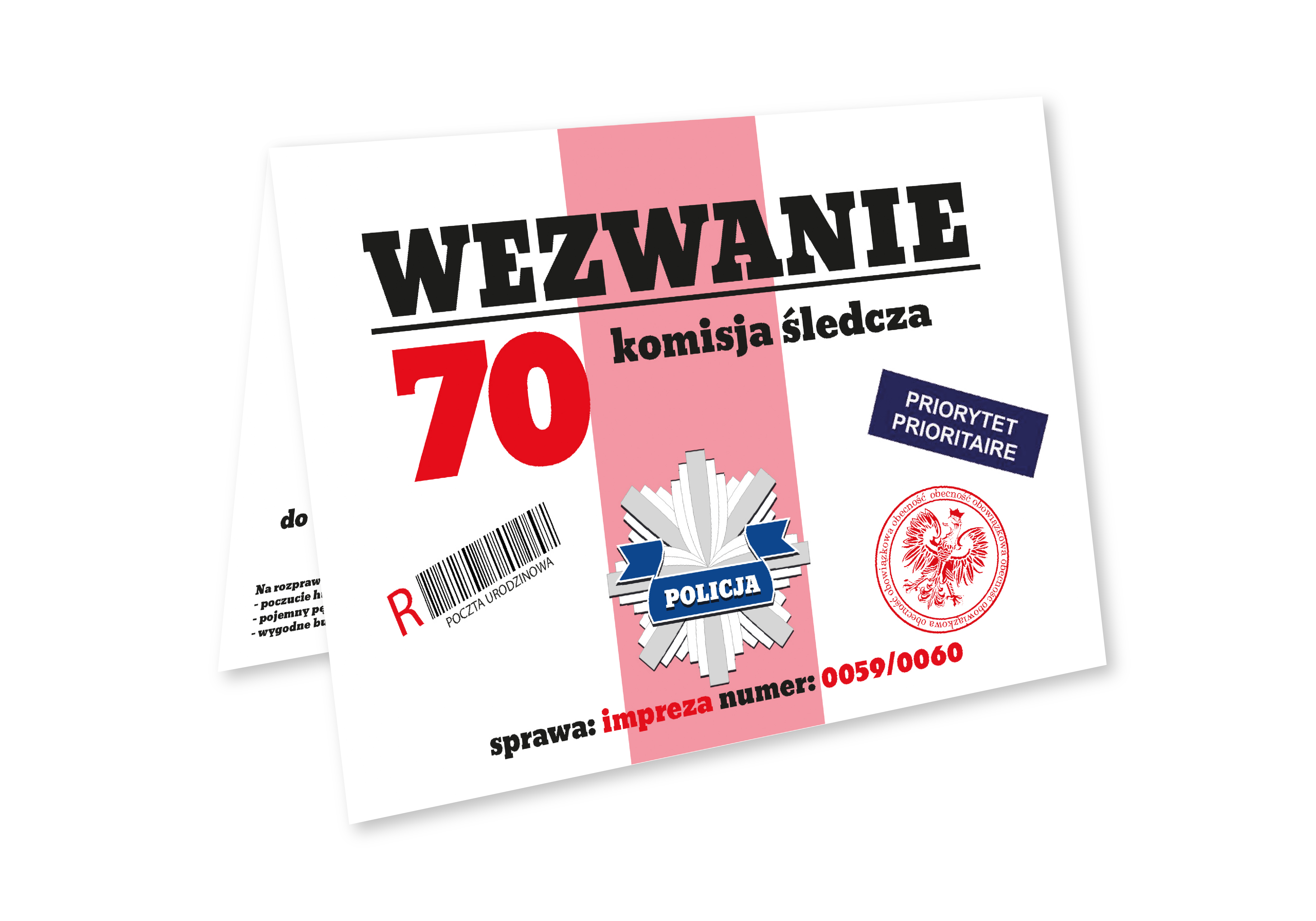 ZAPROSZENIE NA 60 URODZINY WEZWANIE POLICYJNE POLICJA + KOPERTA