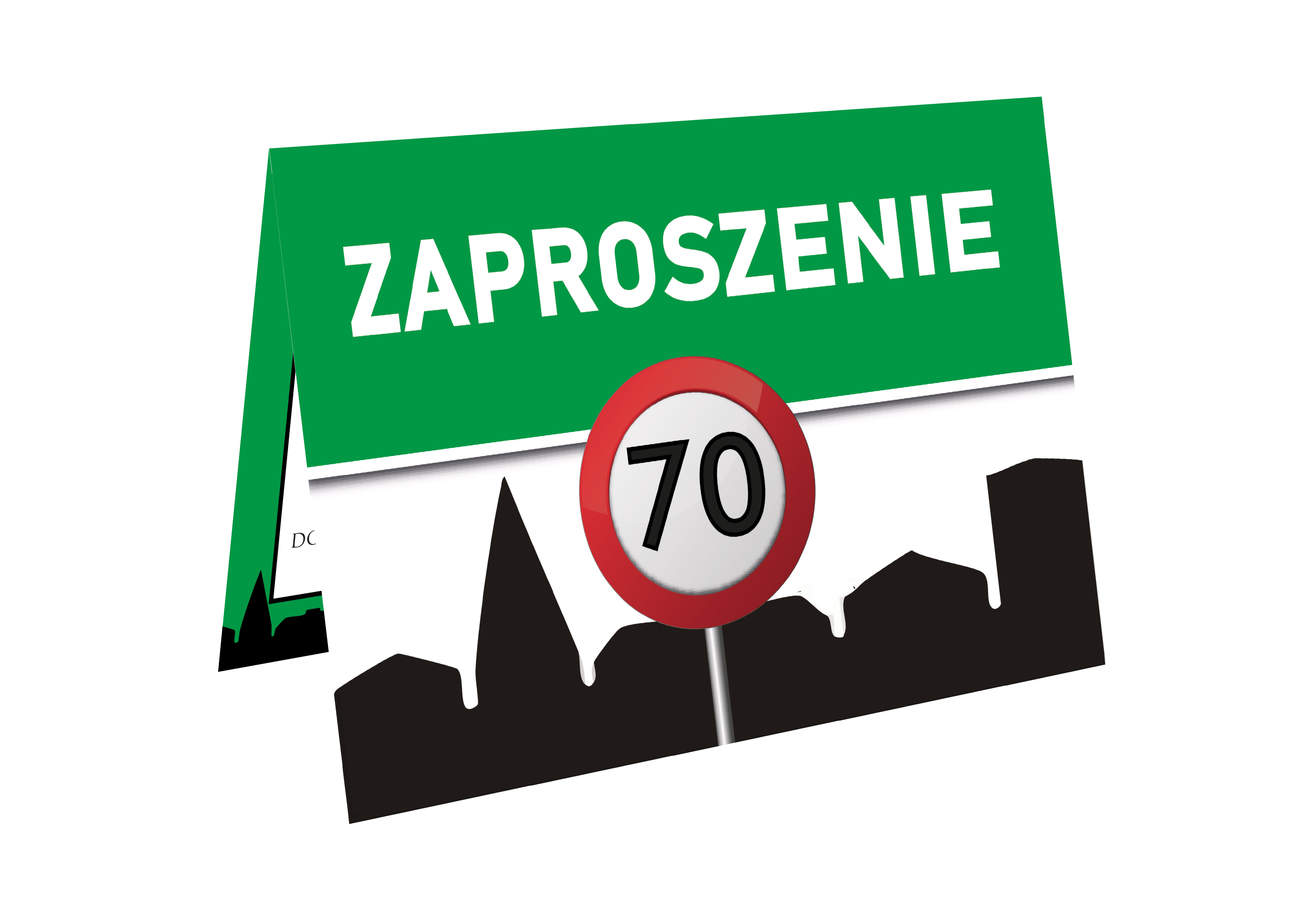 ZAPROSZENIE NA 70 URODZINY ZNAK TEREN ZABUDOWANY ŚMIESZNE