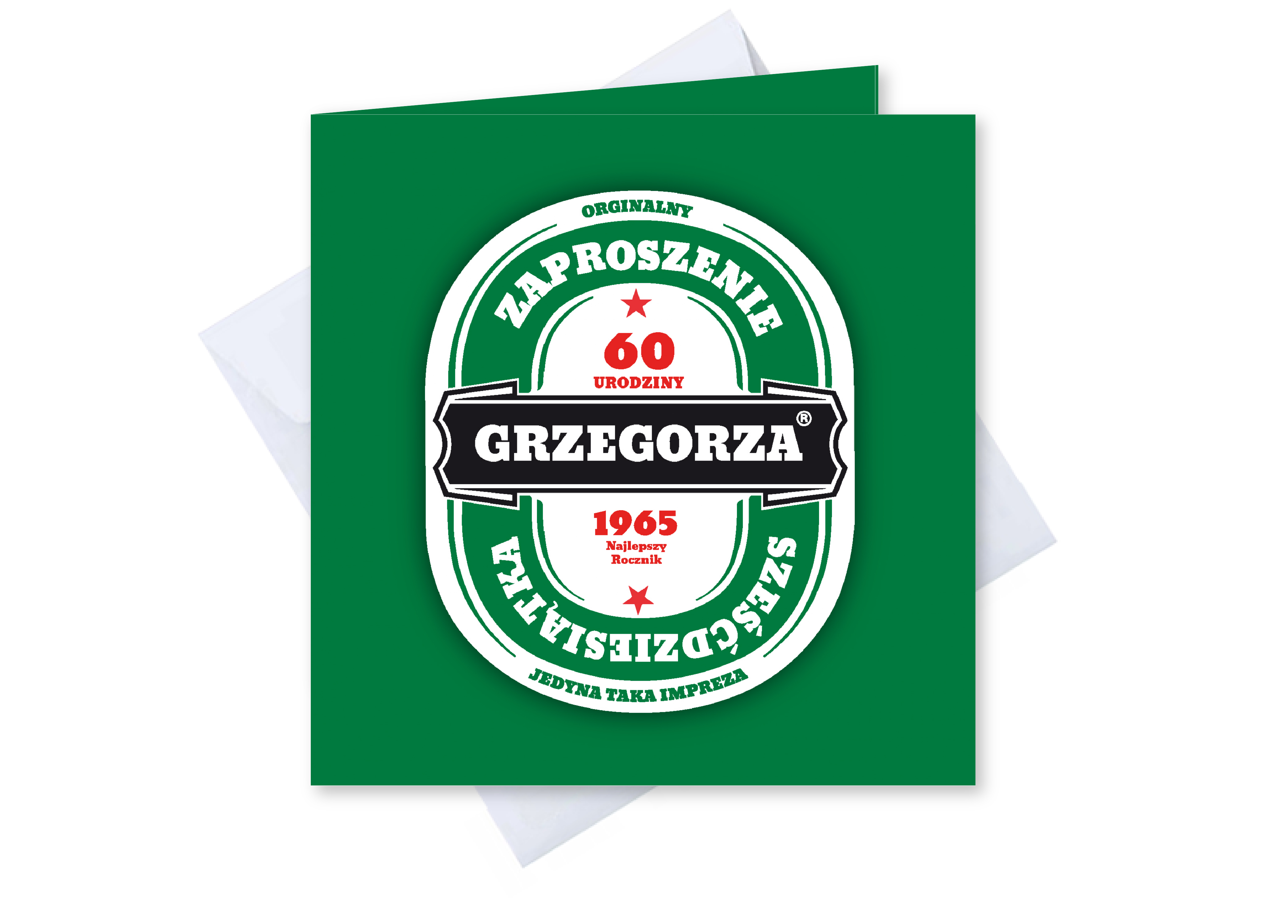 ZAPROSZENIE NA 60 URODZINY PERSONALIZOWANE + KOPERTA piwo jak heineken