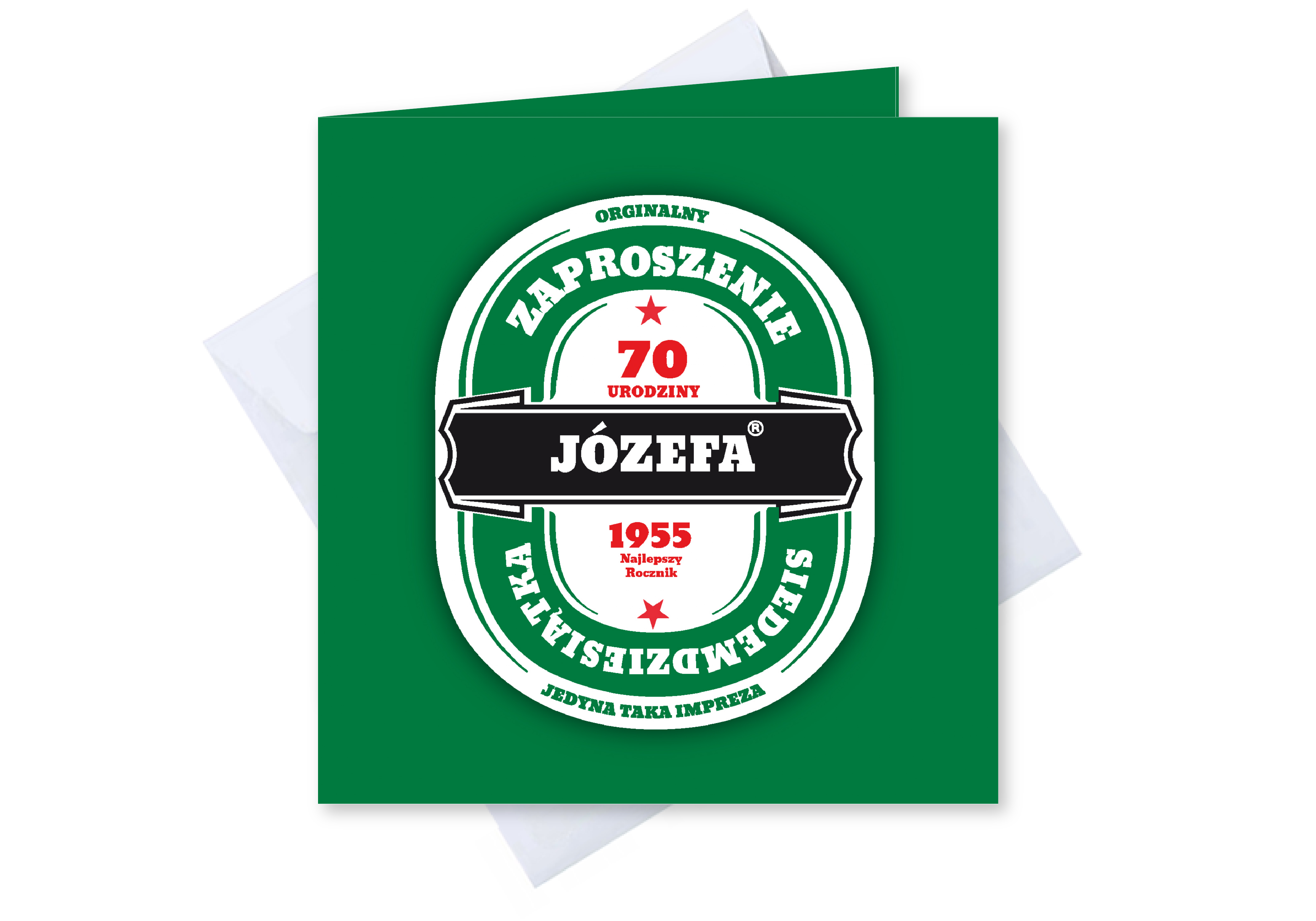 ZAPROSZENIE NA 70 URODZINY PERSONALIZOWANE + KOPERTA piwo jak heineken
