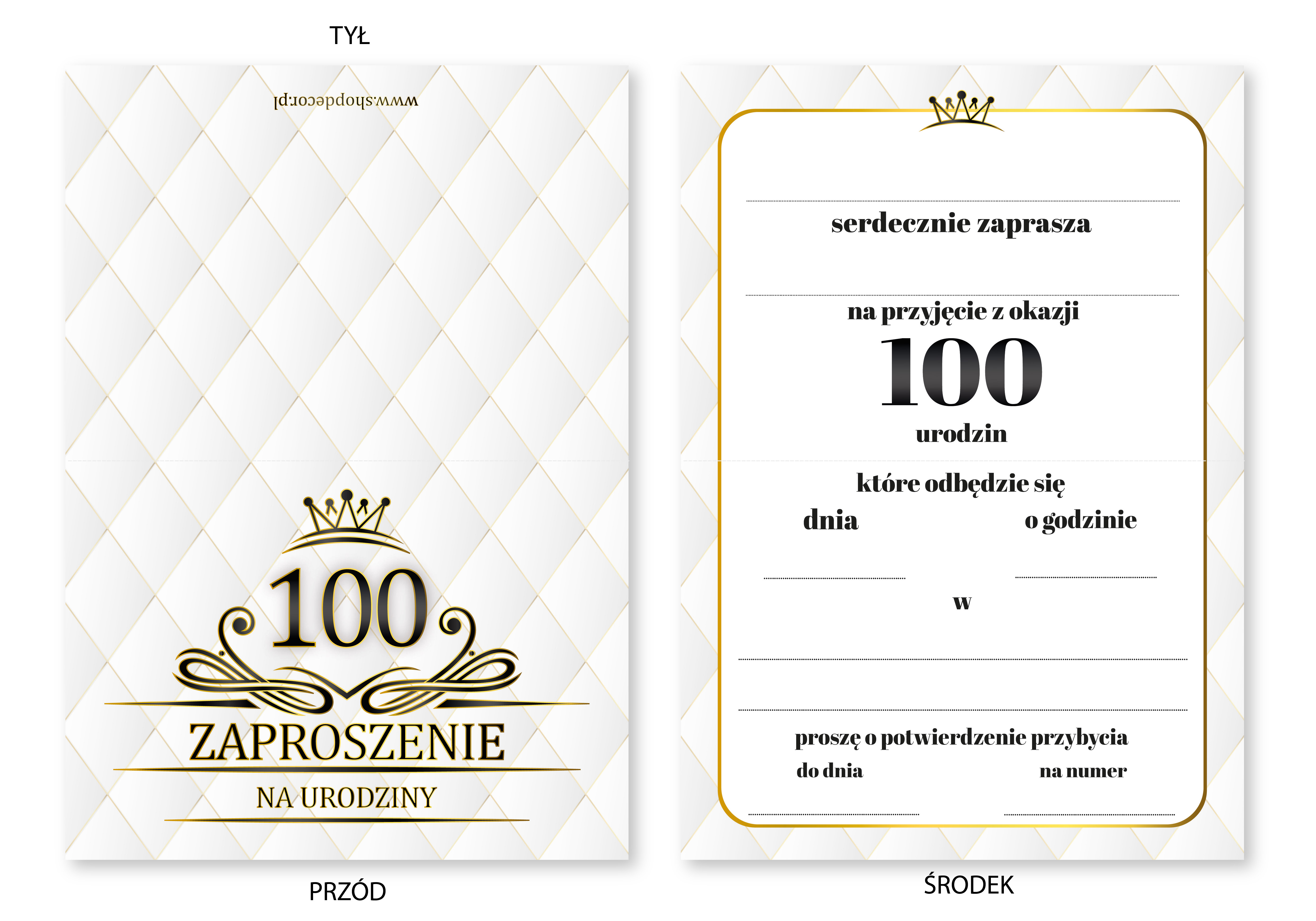 ZAPROSZENIE NA 100 URODZINY LUX BIAŁE LUXURY + KOPERTA