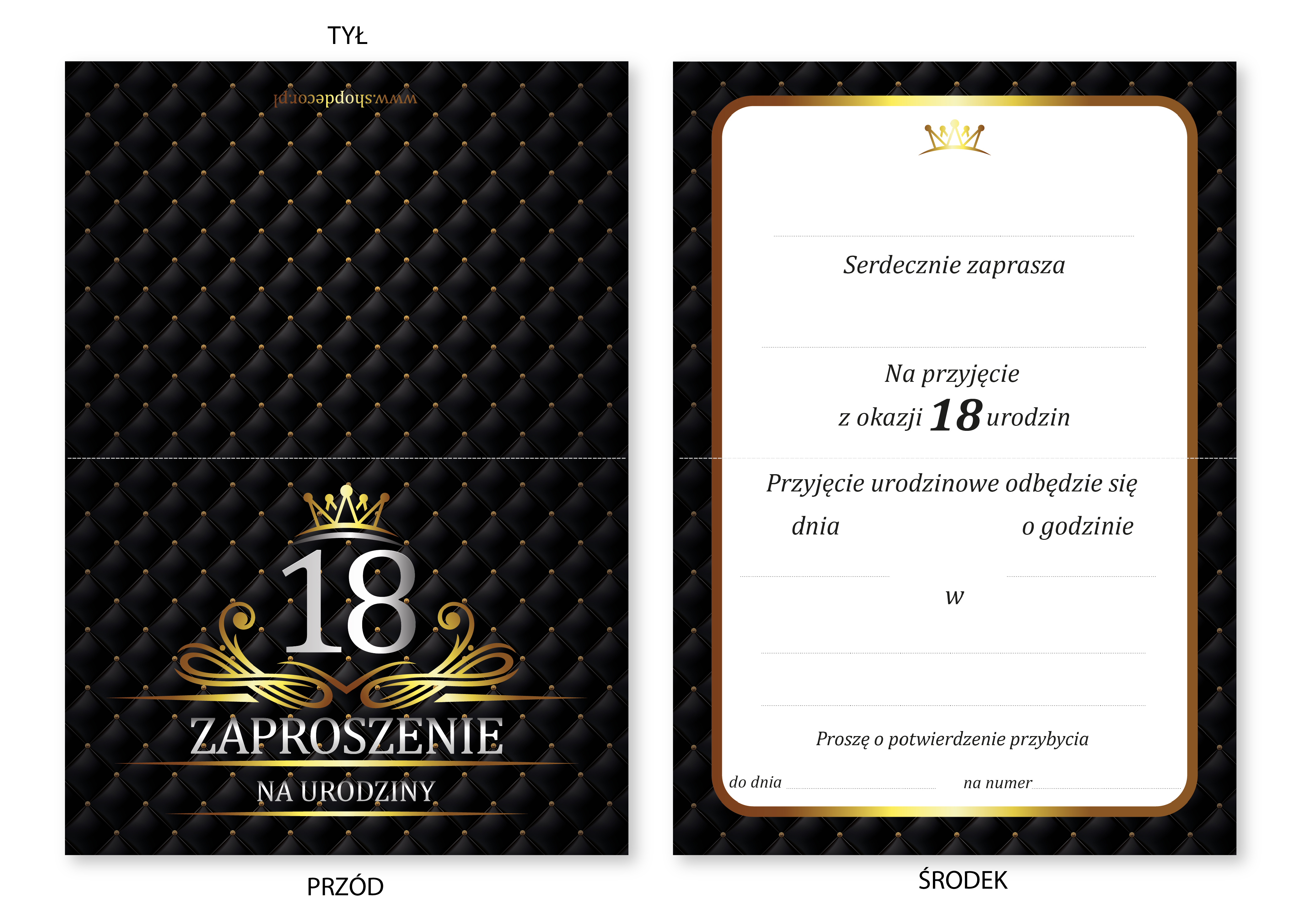 ZAPROSZENIE NA 18 URODZINY LUX CZARNE LUXURY + KOPERTA