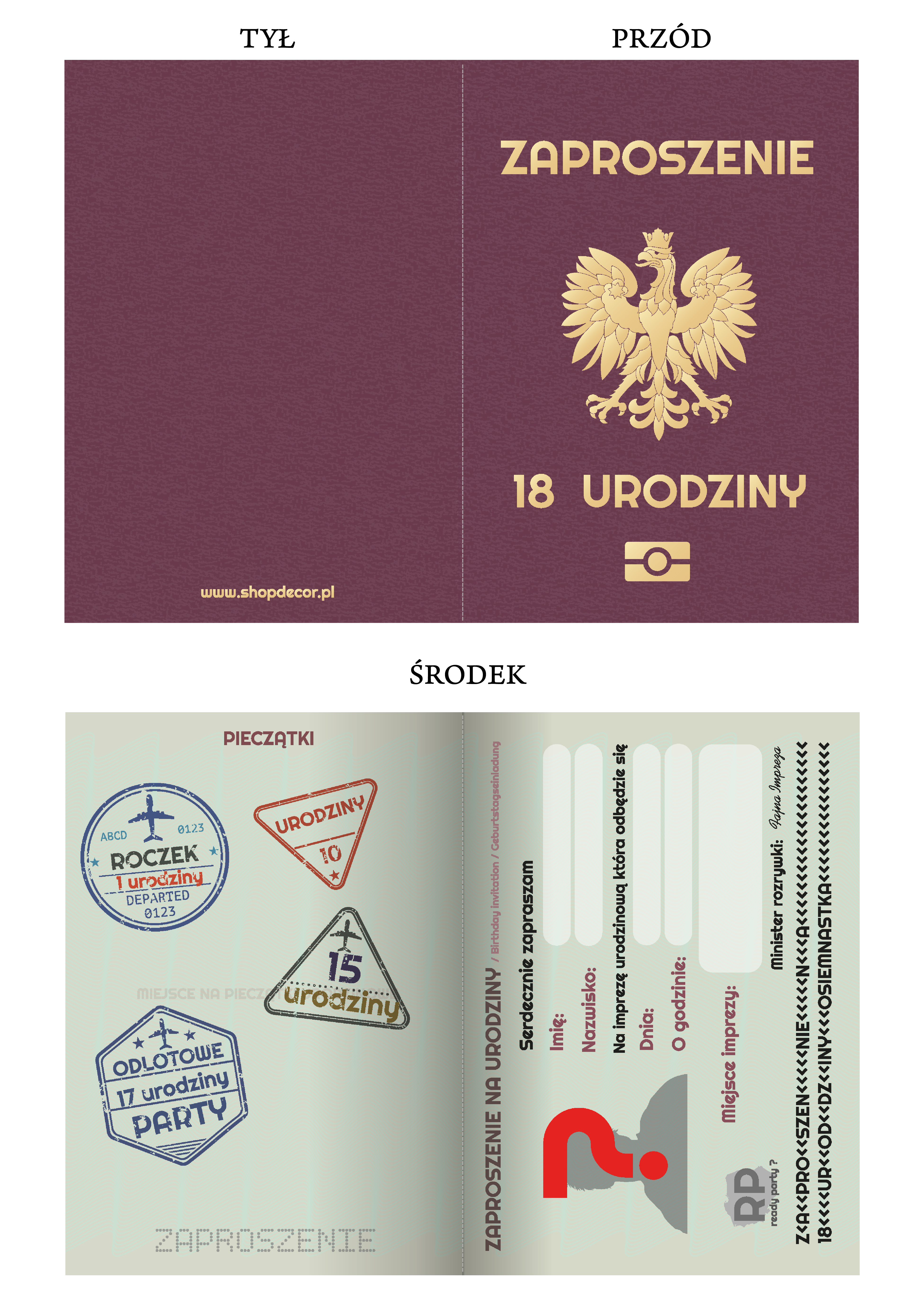 ZAPROSZENIE NA 18 URODZINY PASZPORT + KOPERTA