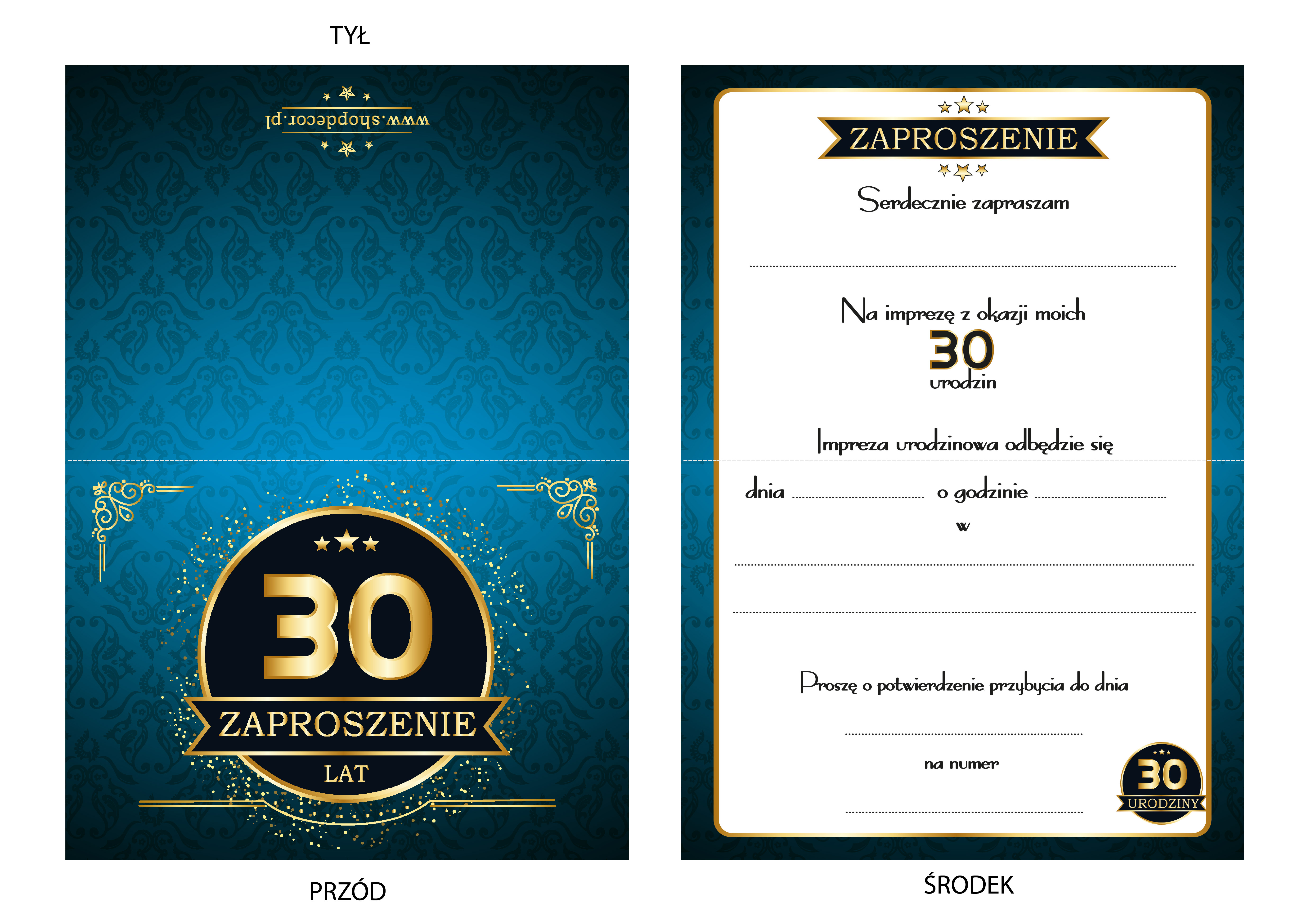 ZAPROSZENIE NA 30 URODZINY LUXURY LUX NIEBIESKIE + KOPERTA