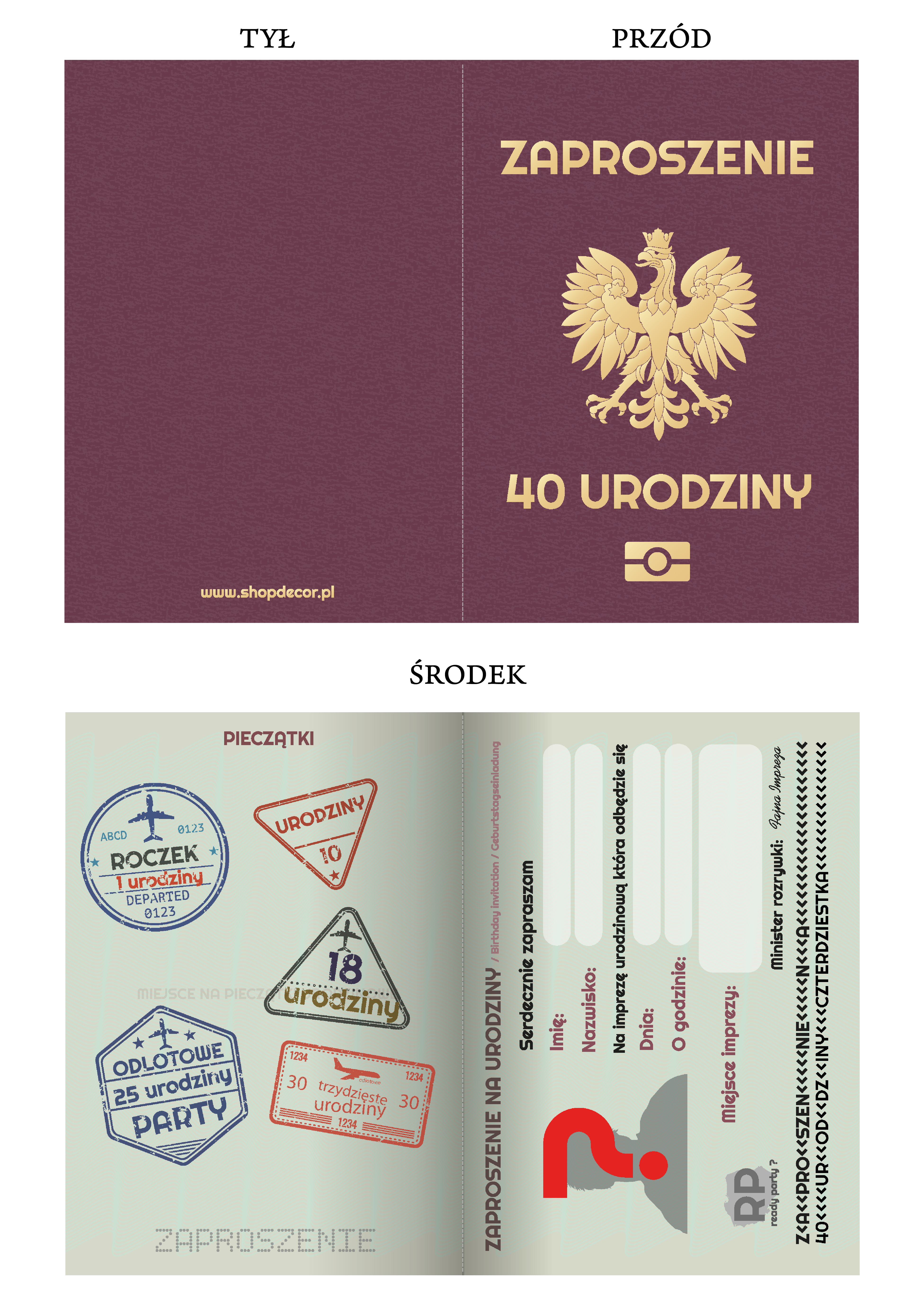 ZAPROSZENIE NA 40 URODZINY PASZPORT + KOPERTA