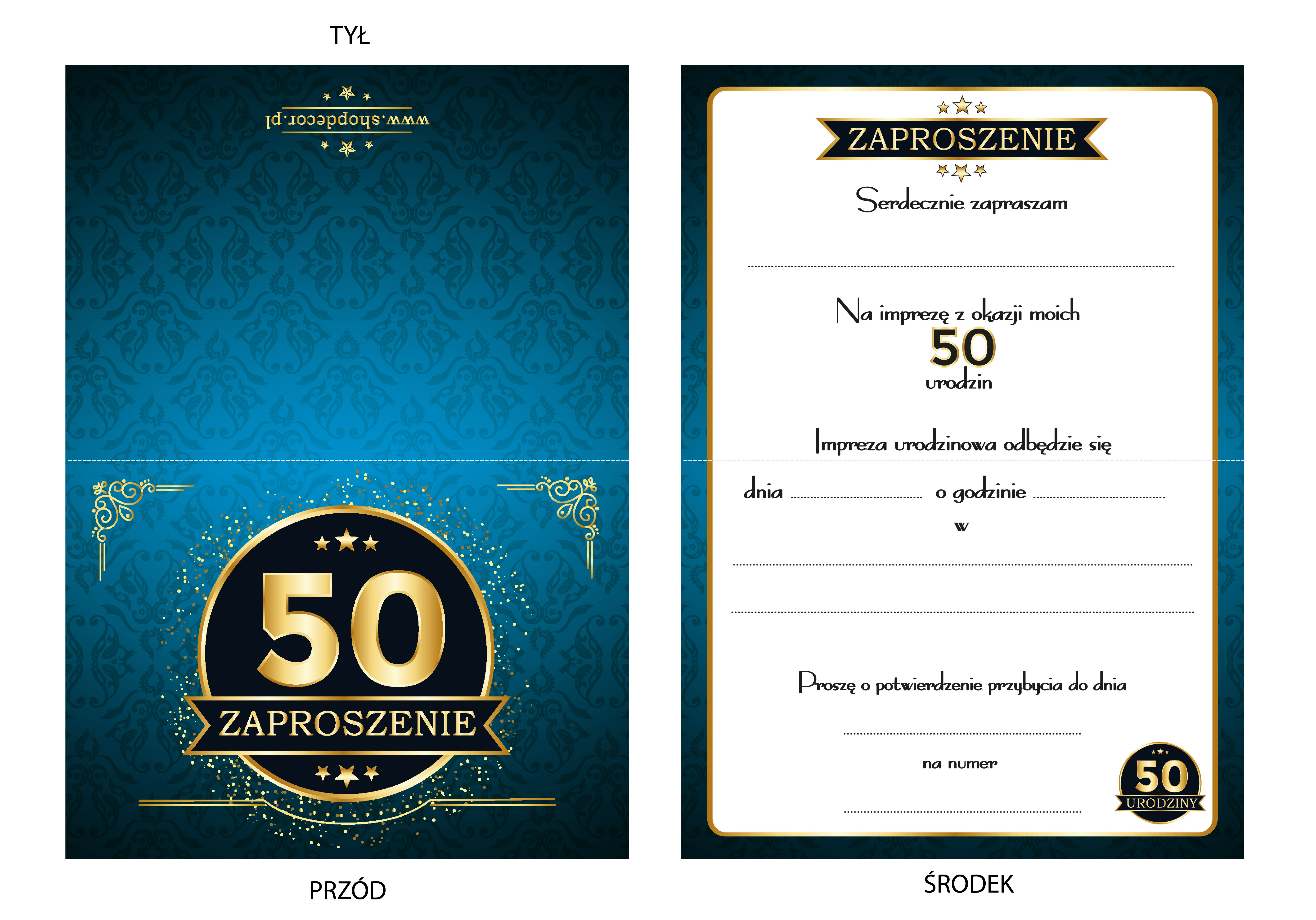 ZAPROSZENIE NA 50 URODZINY LUXURY LUX NIEBIESKIE + KOPERTA