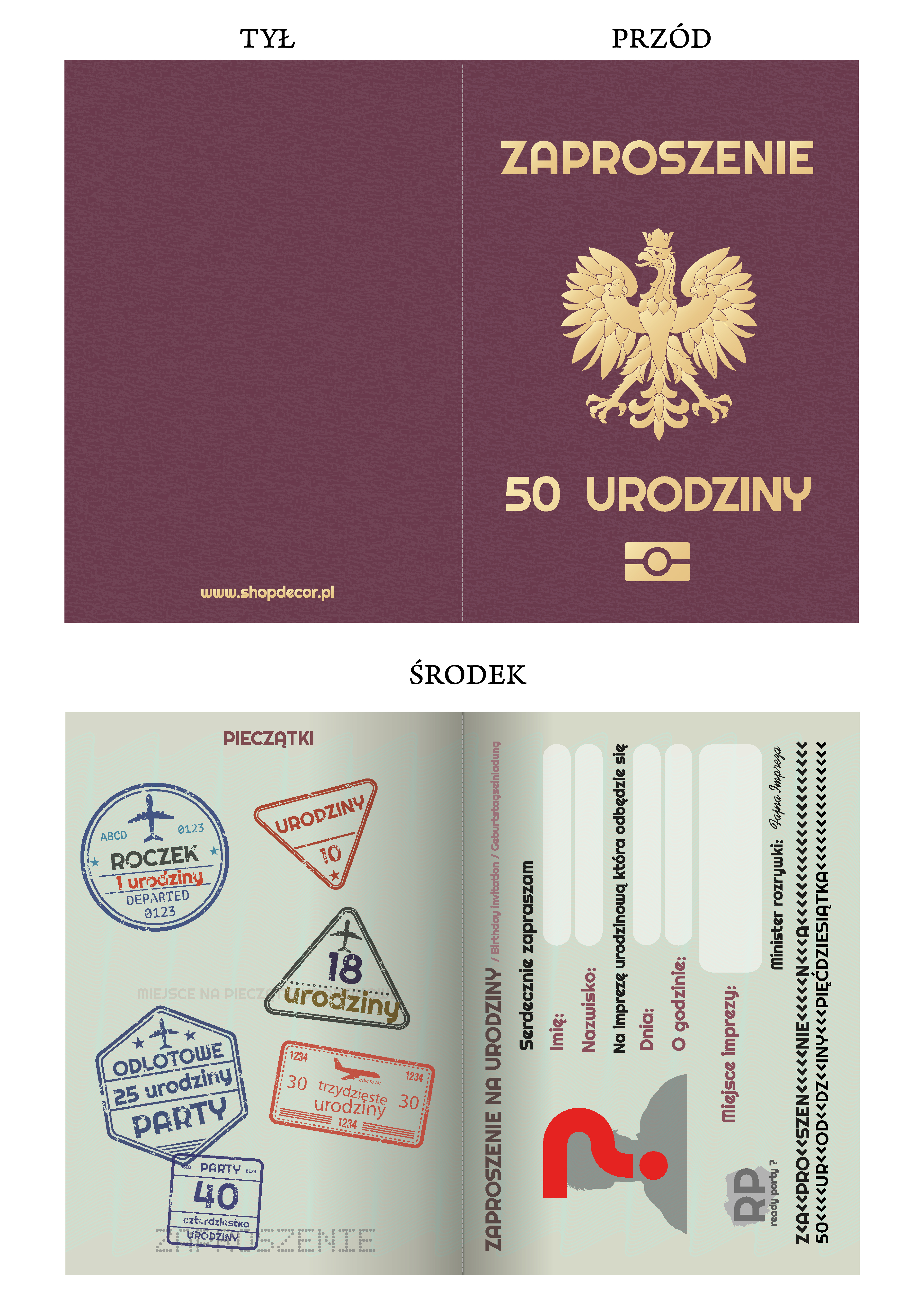 ZAPROSZENIE NA 50 URODZINY PASZPORT + KOPERTAZAPROSZENIE NA 50 URODZINY PASZPORT + KOPERTA