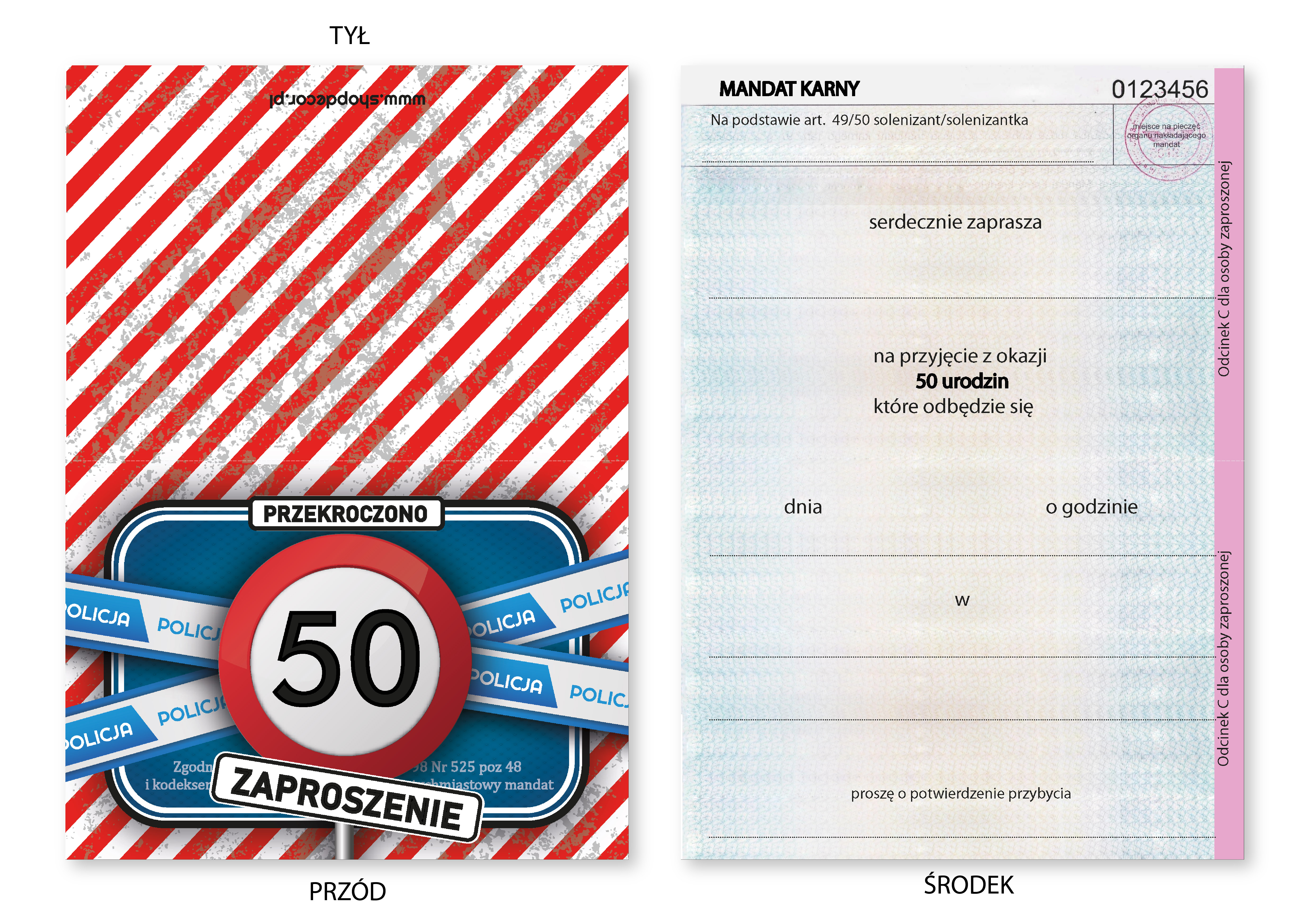 Strona główna » Zaproszenia » 50 urodziny » ZAPROSZENIE NA 50 URODZINY ZNAK MANDAT WEZWANIE ZAKAZ + KOPERTA