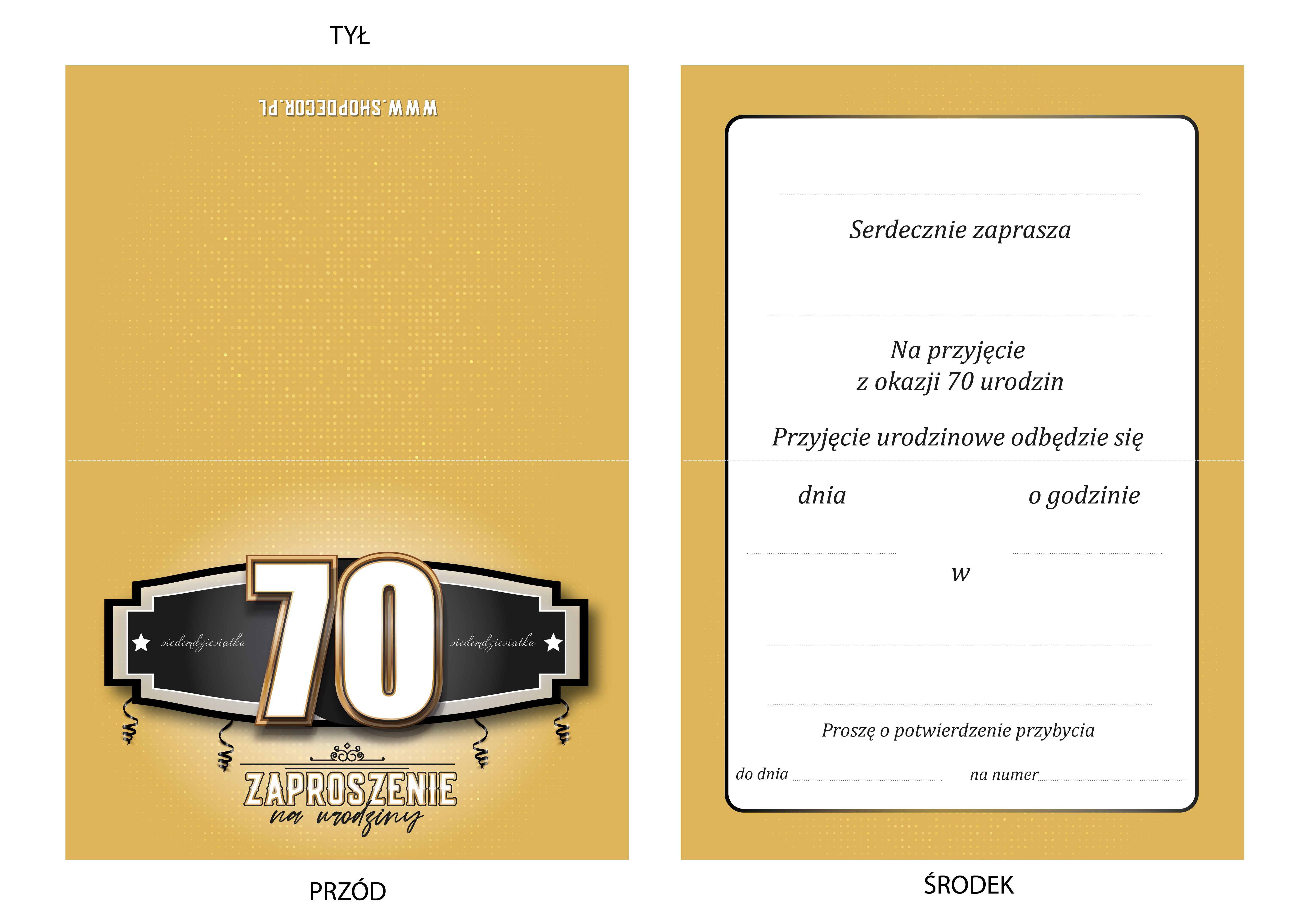 ZAPROSZENIE NA 70 URODZINY ZŁOTE GOLD ELEGANCKIE LUXURY + KOPERTA