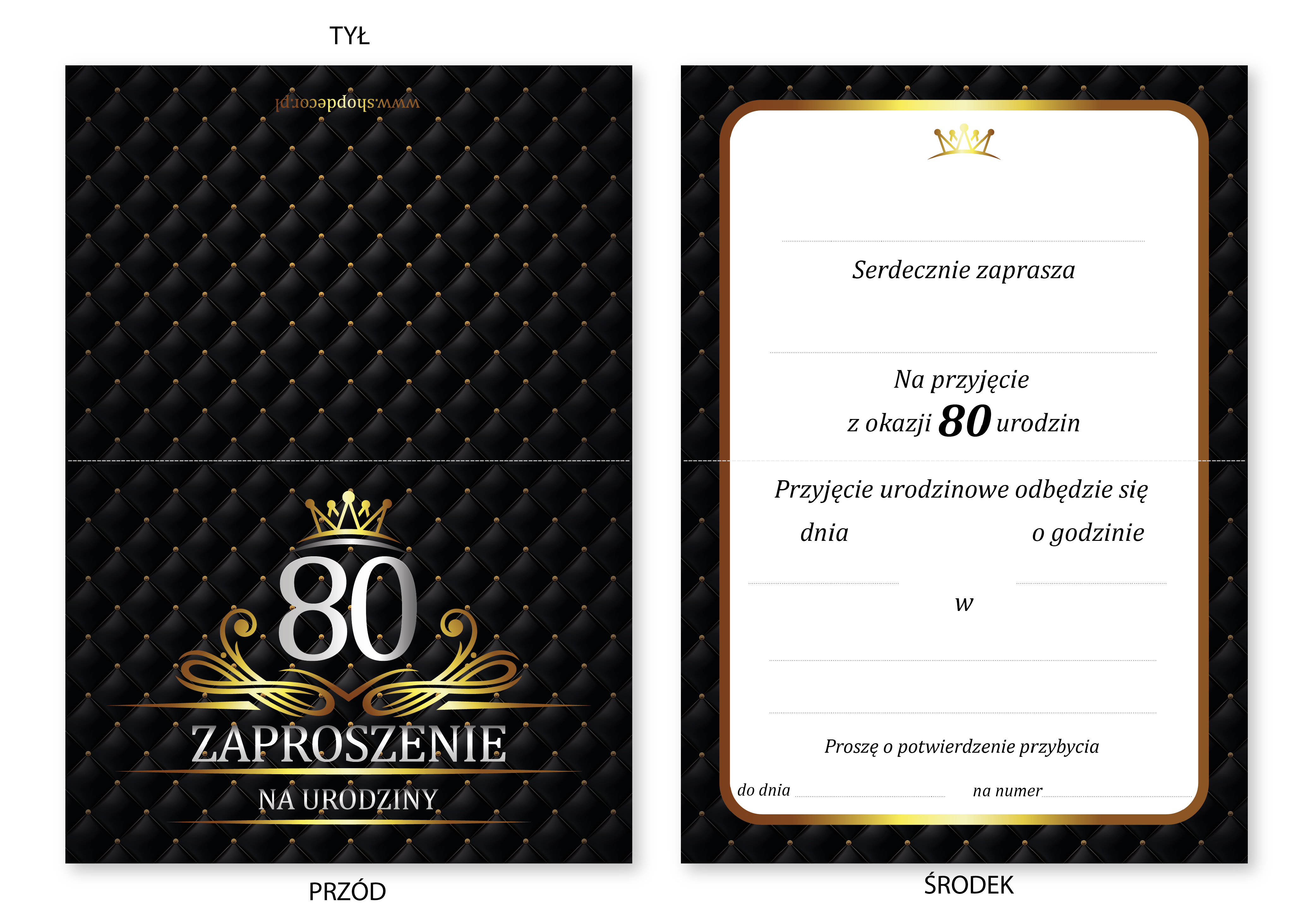ZAPROSZENIE NA 80 URODZINY LUX CZARNE LUXURY + KOPERTA