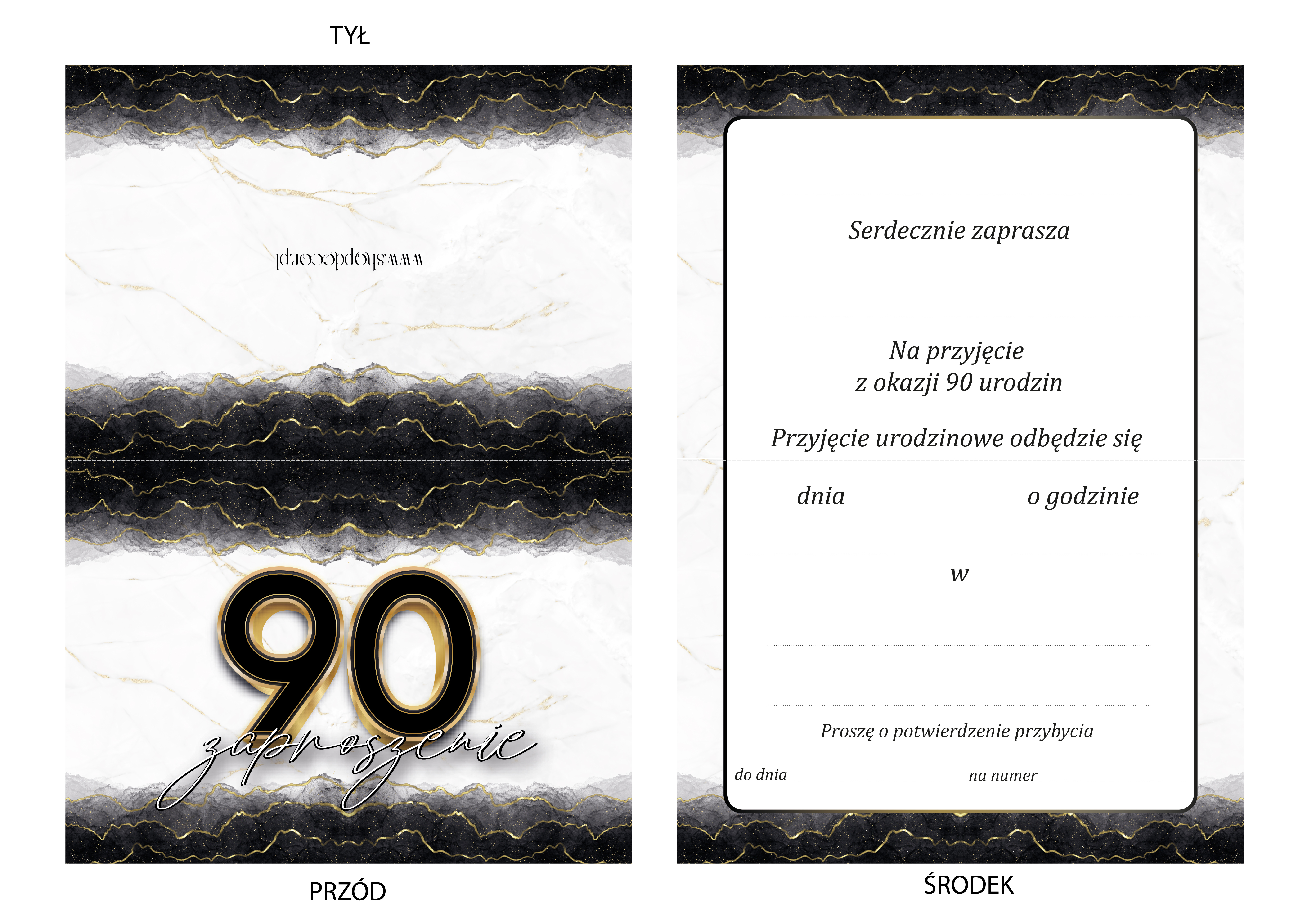 ZAPROSZENIE NA 90 URODZINY ELEGANCKIE BLACKGOLD BROKAT + KOPERTA