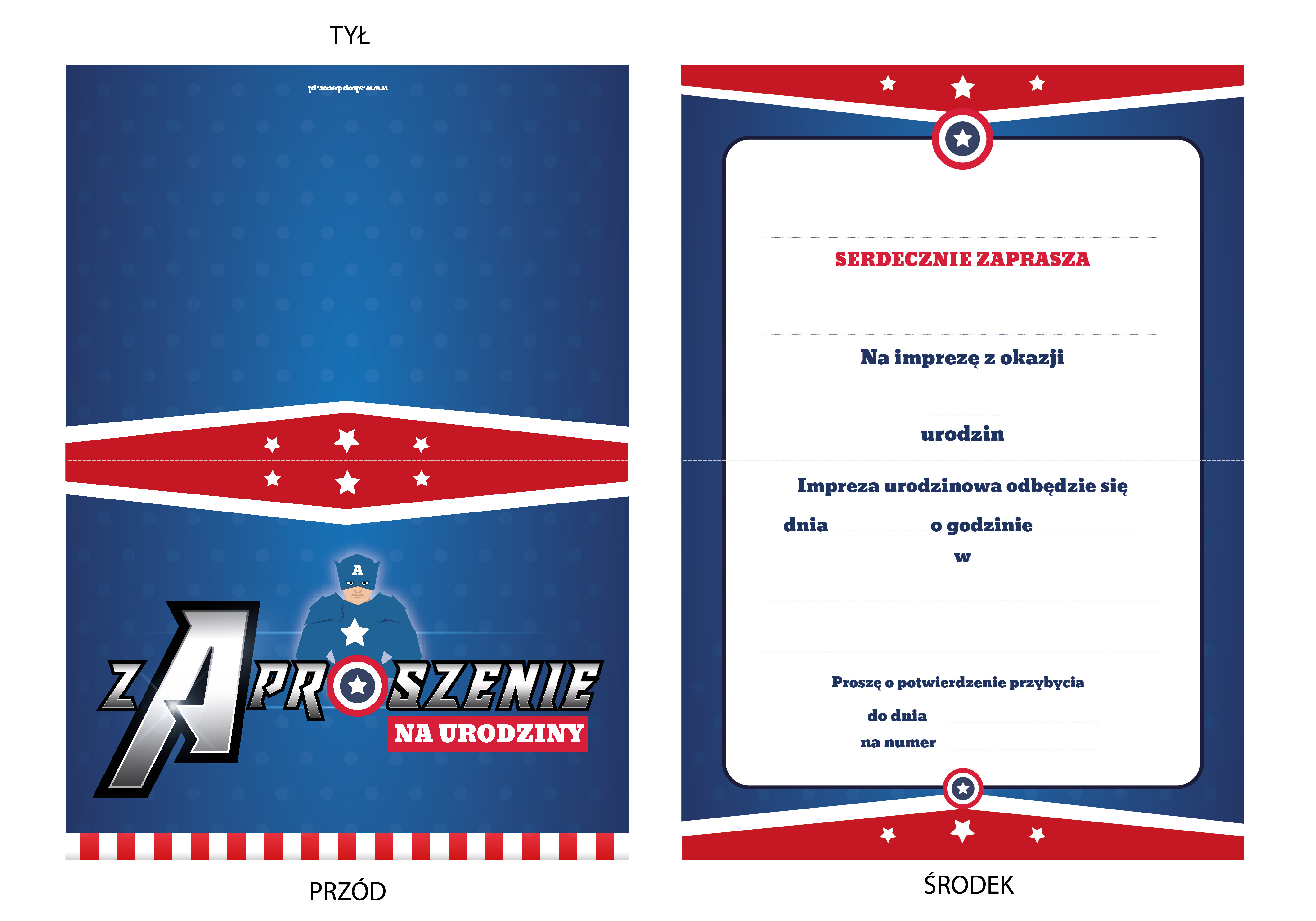 ZAPROSZENIE NA URODZINY AVENGERS KAPITAN AMERYKA + KOPERTAZAPROSZENIE NA URODZINY AVENGERS KAPITAN AMERYKA + KOPERTA