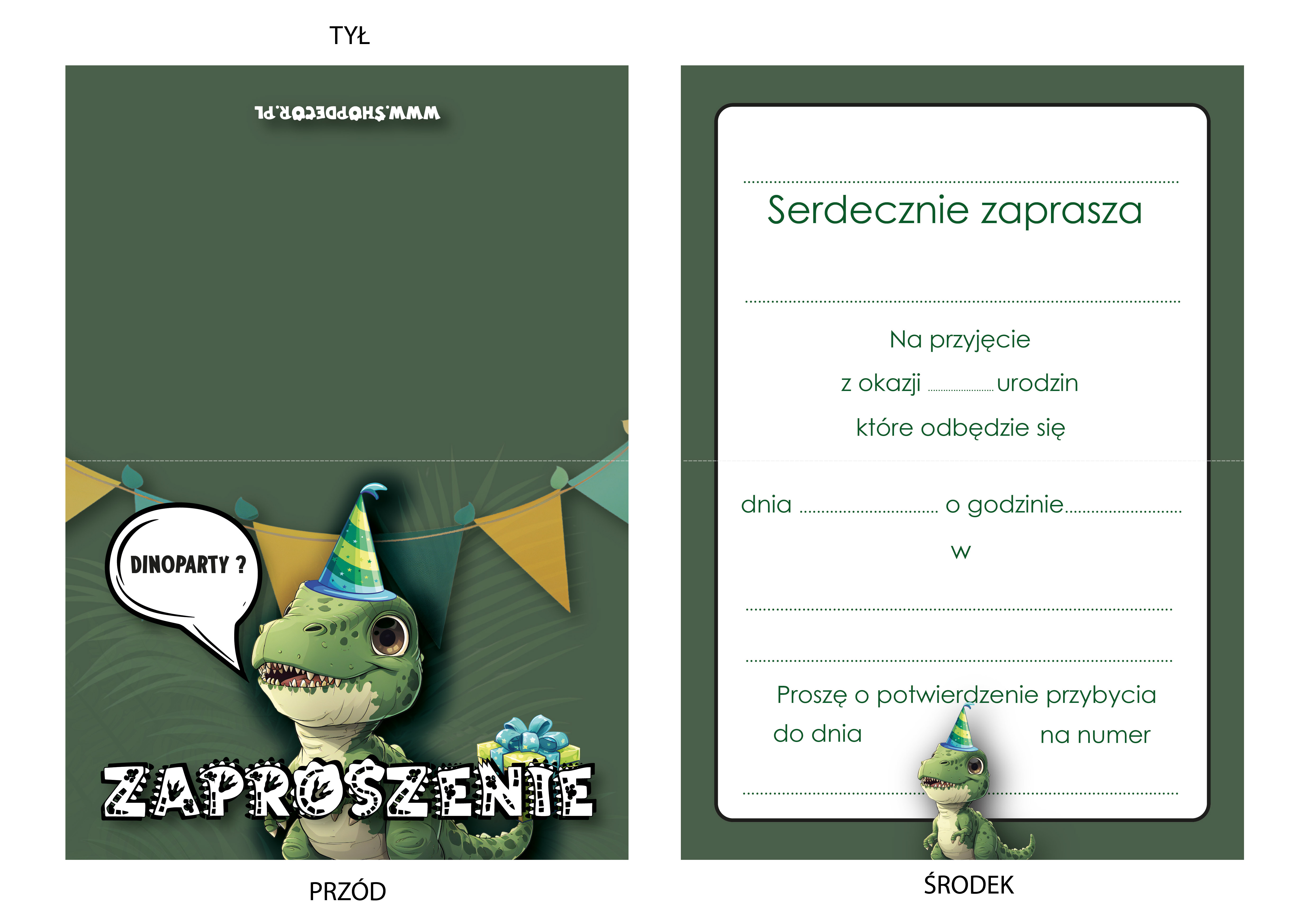 ZAPROSZENIE NA URODZINY DINOZAUR DINO URODZINOWE DINOZAURY + KOPERTA