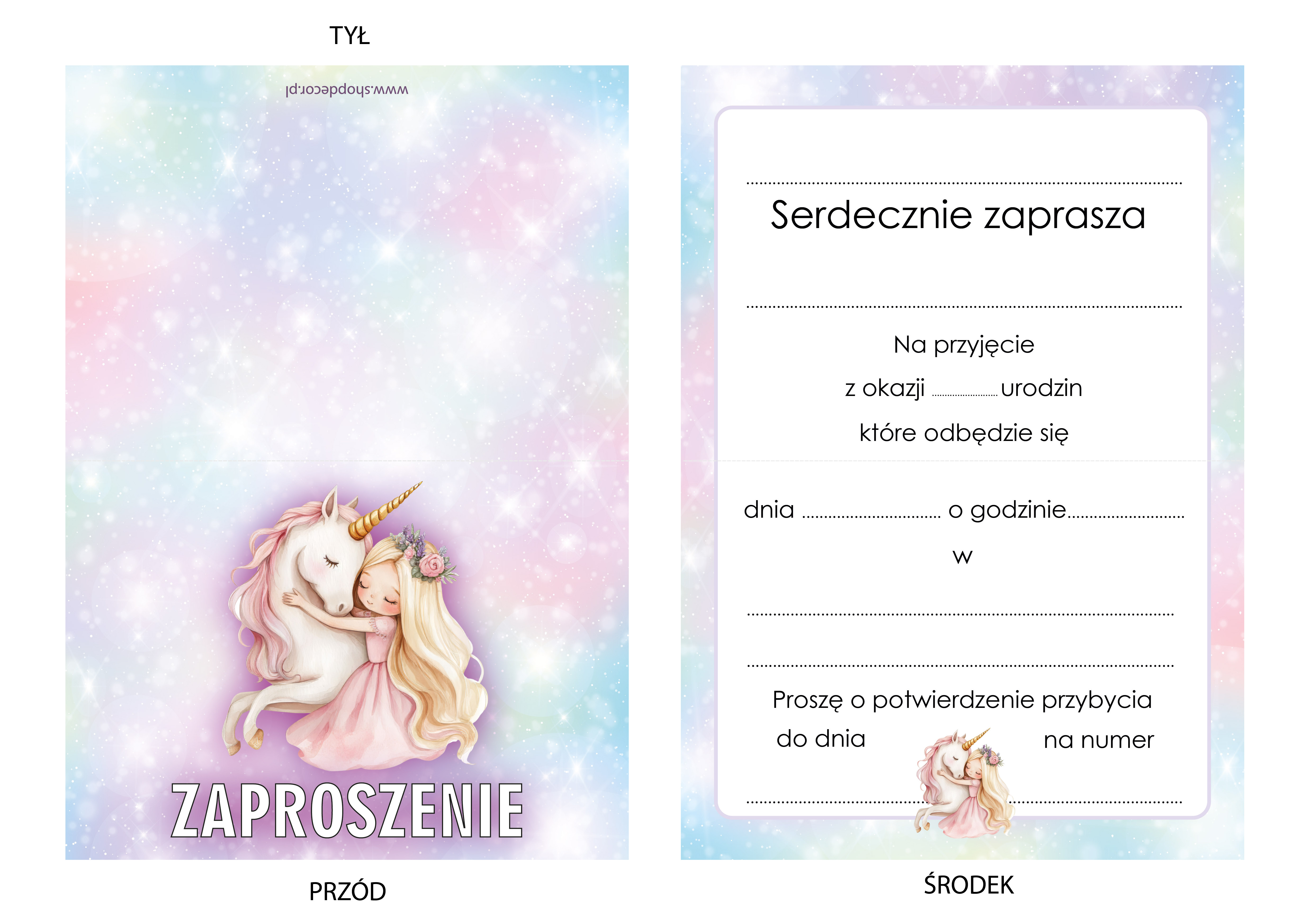 ZAPROSZENIE NA URODZINY JEDNOROŻEC MAGICZNY UNICORN URODZINOWE + KOPERTA