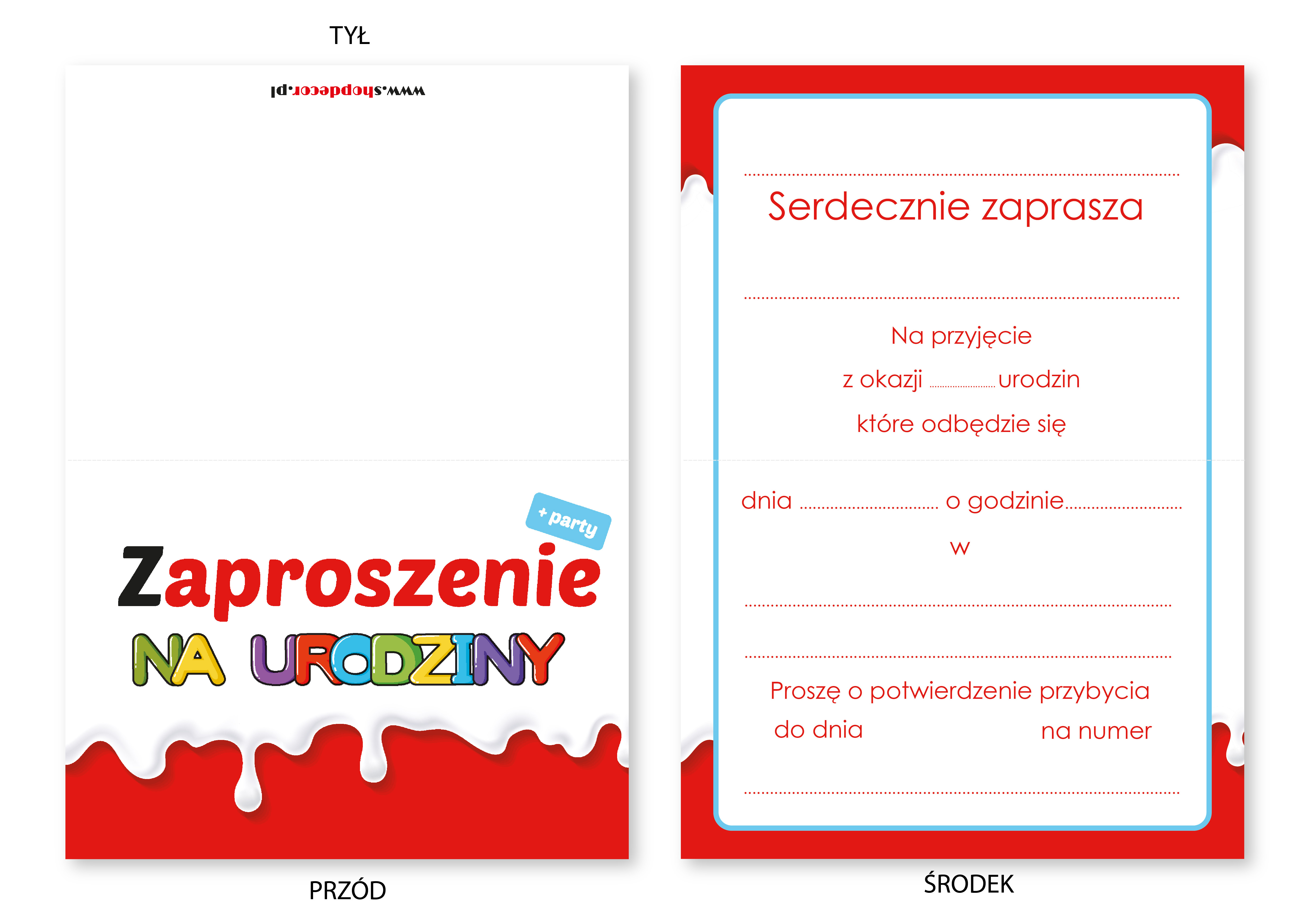 ZAPROSZENIE NA URODZINY KINDER NIESPODZINKA URODZINOWE + KOPERTA