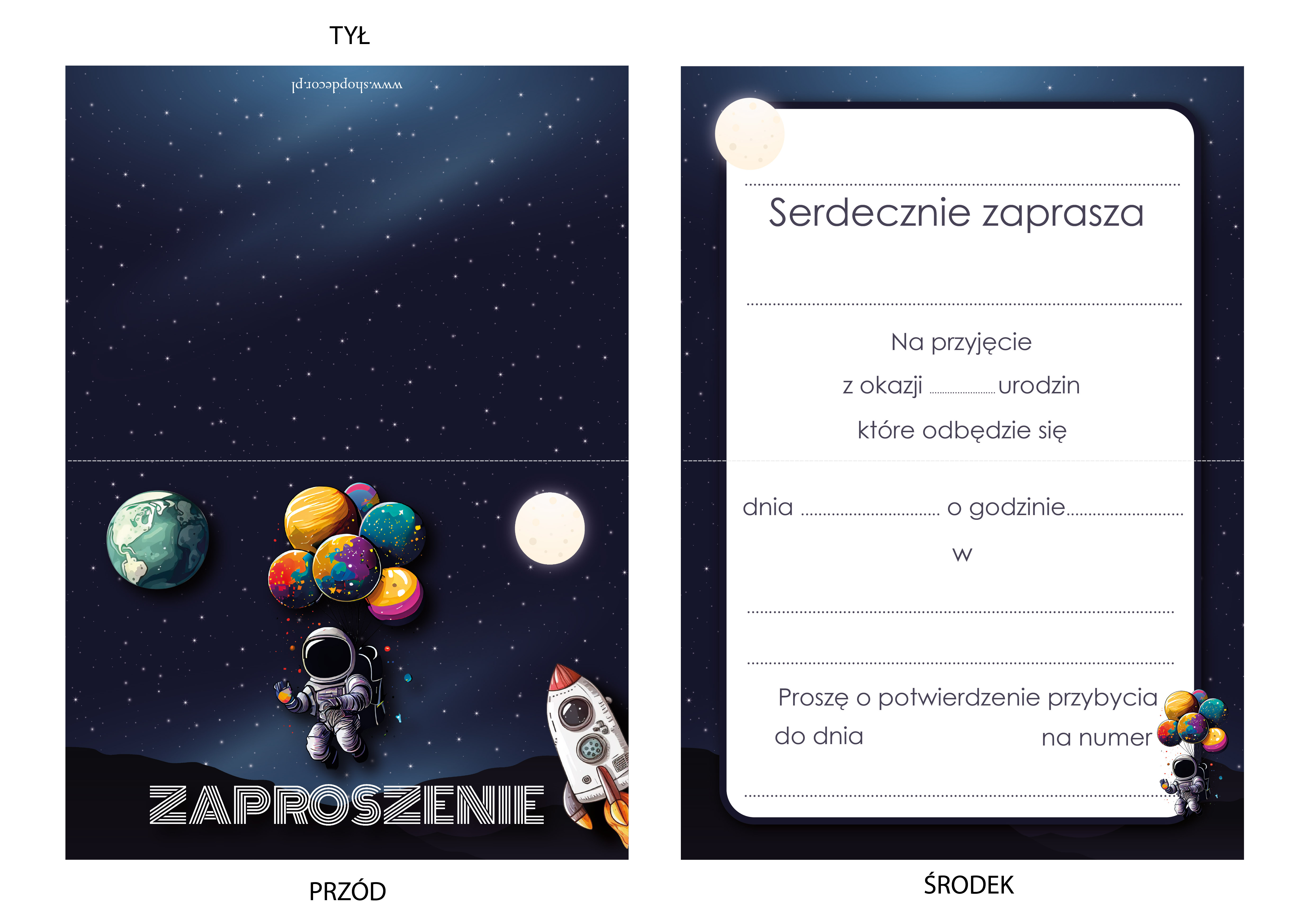 Strona główna » Zaproszenia » Urodziny dzieci » ZAPROSZENIE NA URODZINY KOSMOS ASTRONAUTA + KOPERTA