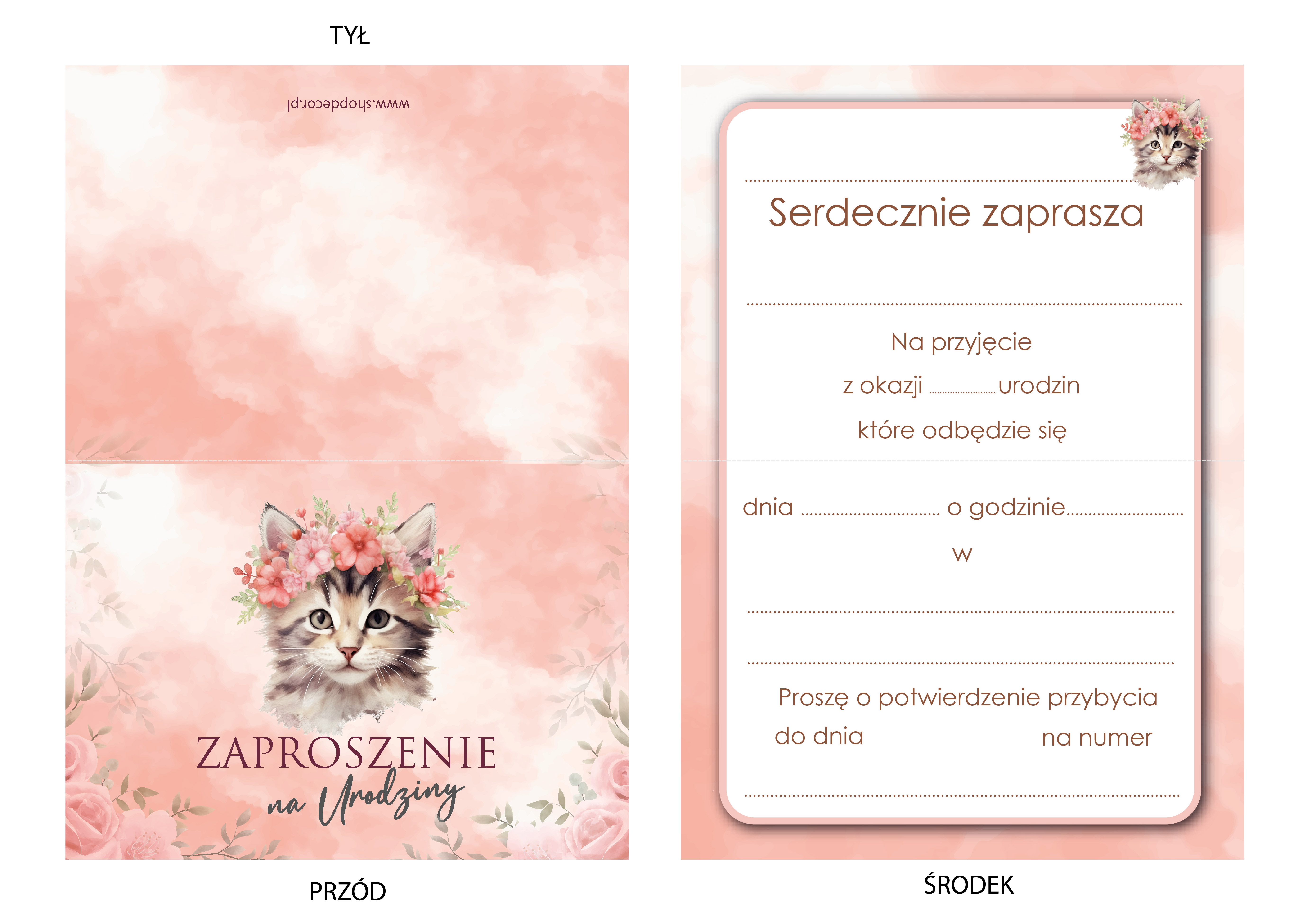 ZAPROSZENIE NA URODZINY KOT KOTEK URODZINOWE + KOPERTA