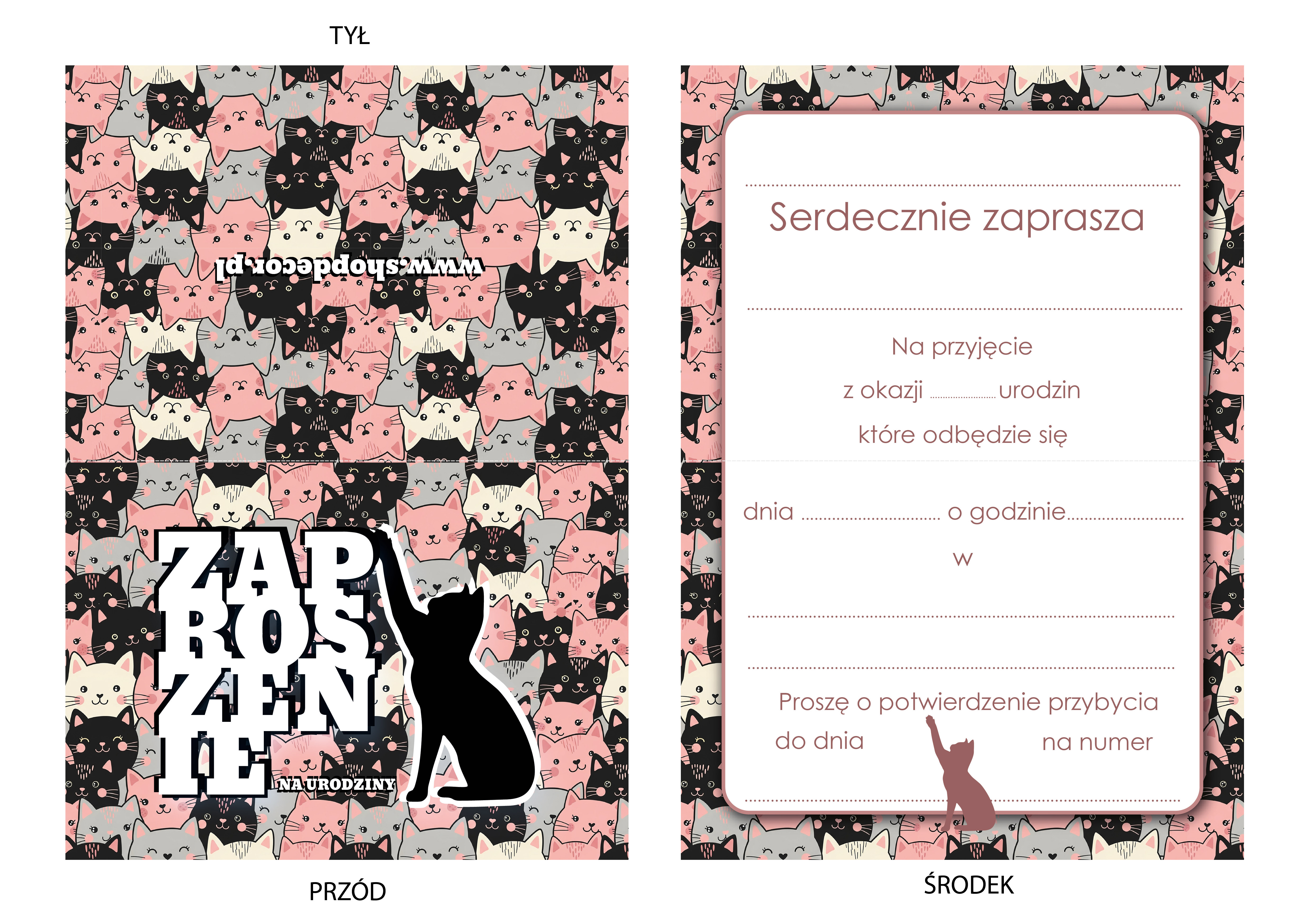 ZAPROSZENIE NA URODZINY KOTY KOTEK URODZINOWE + KOPERTA