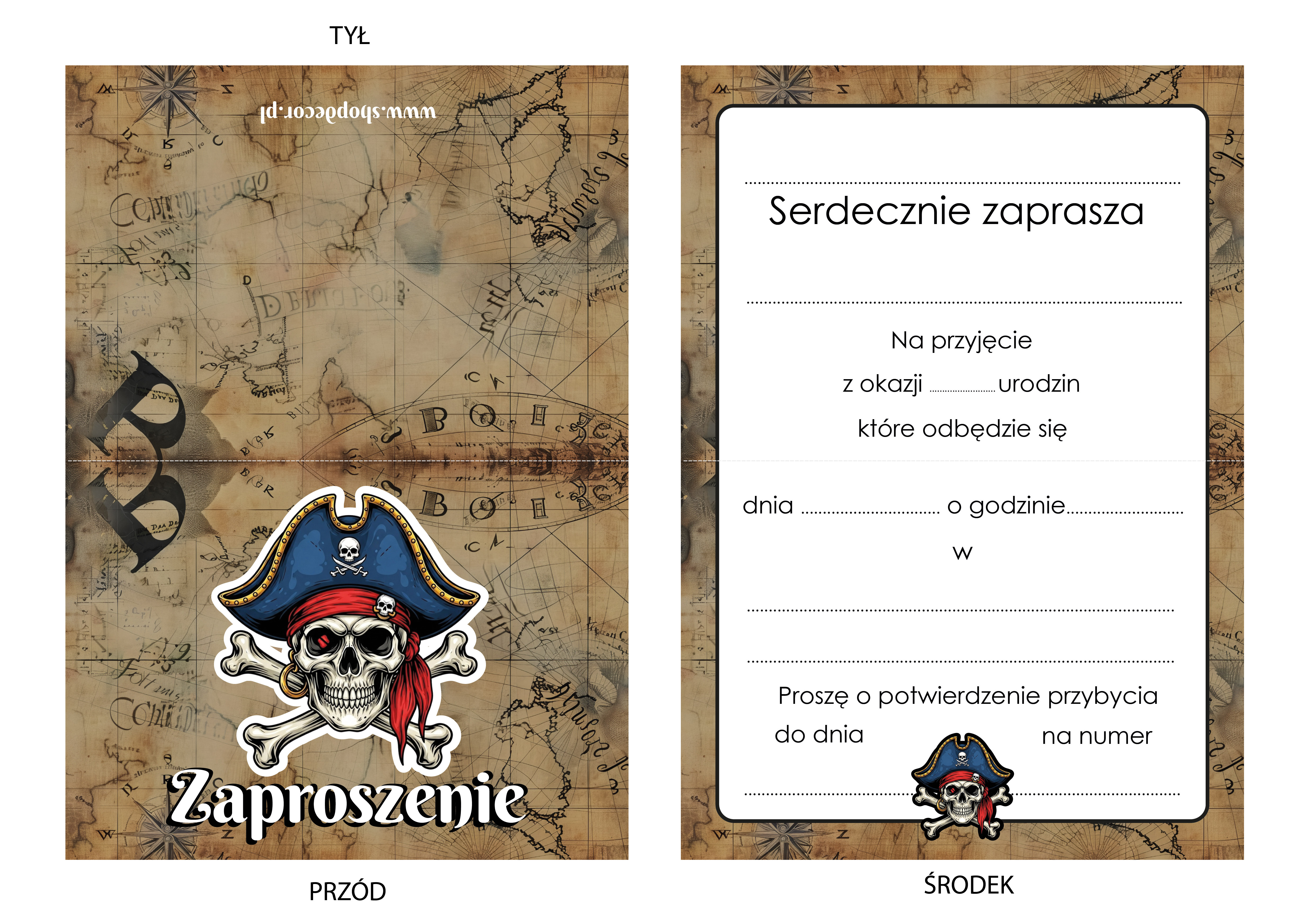 ZAPROSZENIE NA URODZINY PIRACKIE PIRAT SKARB URODZINOWE + KOPERTA